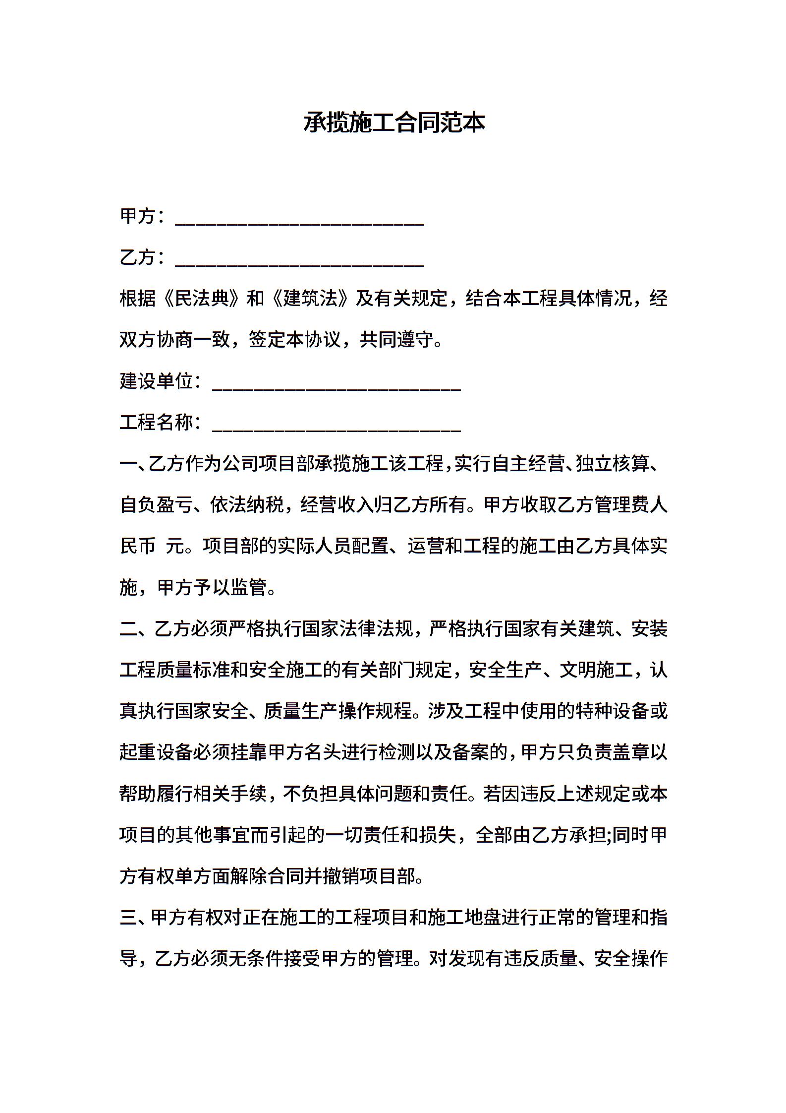 承揽施工合同范本