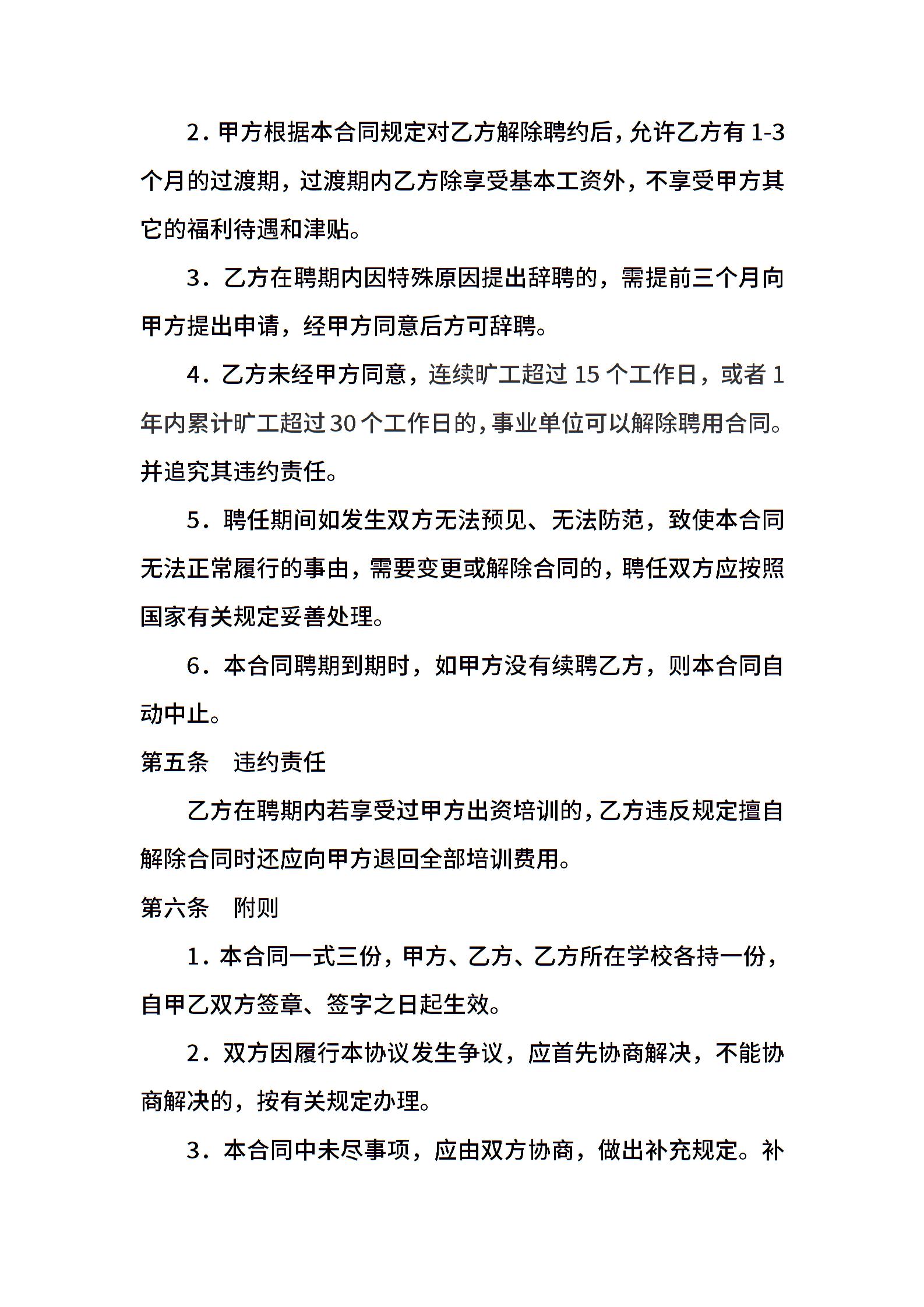 • 分类 聘用合同