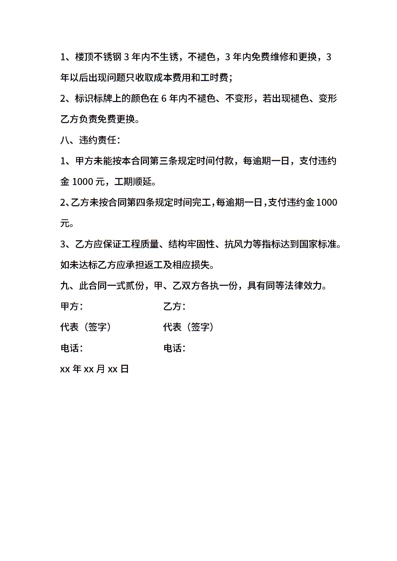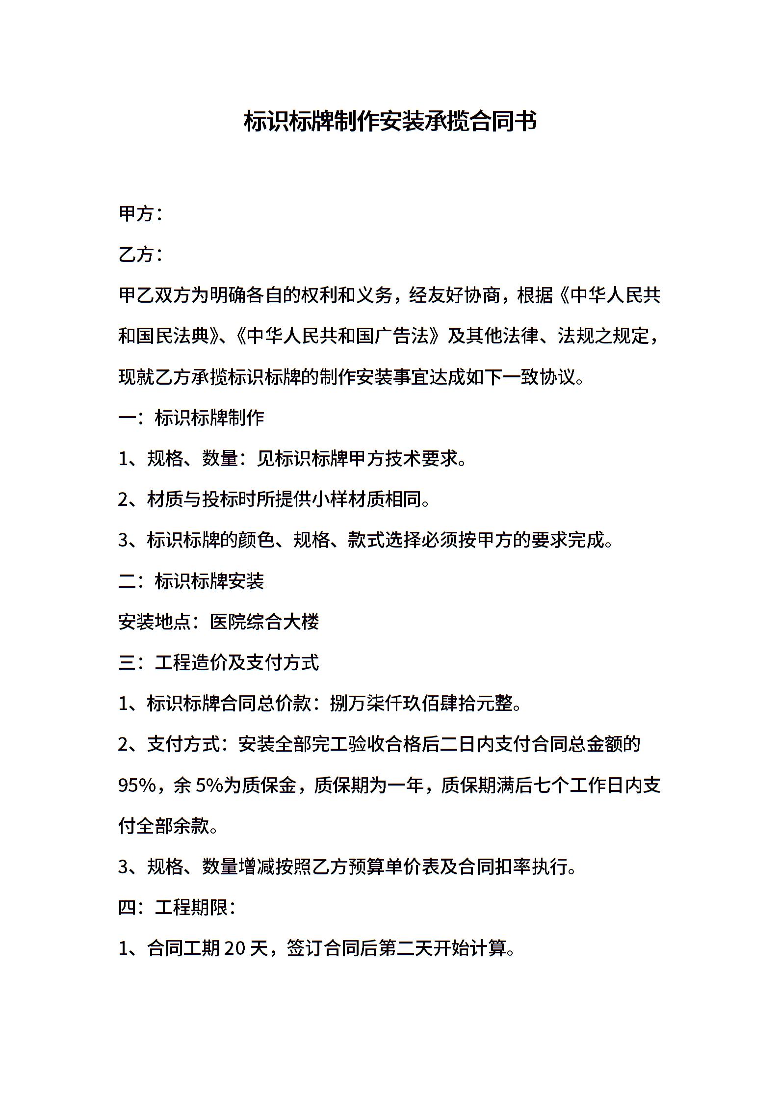 标识标牌制作安装承揽合同书