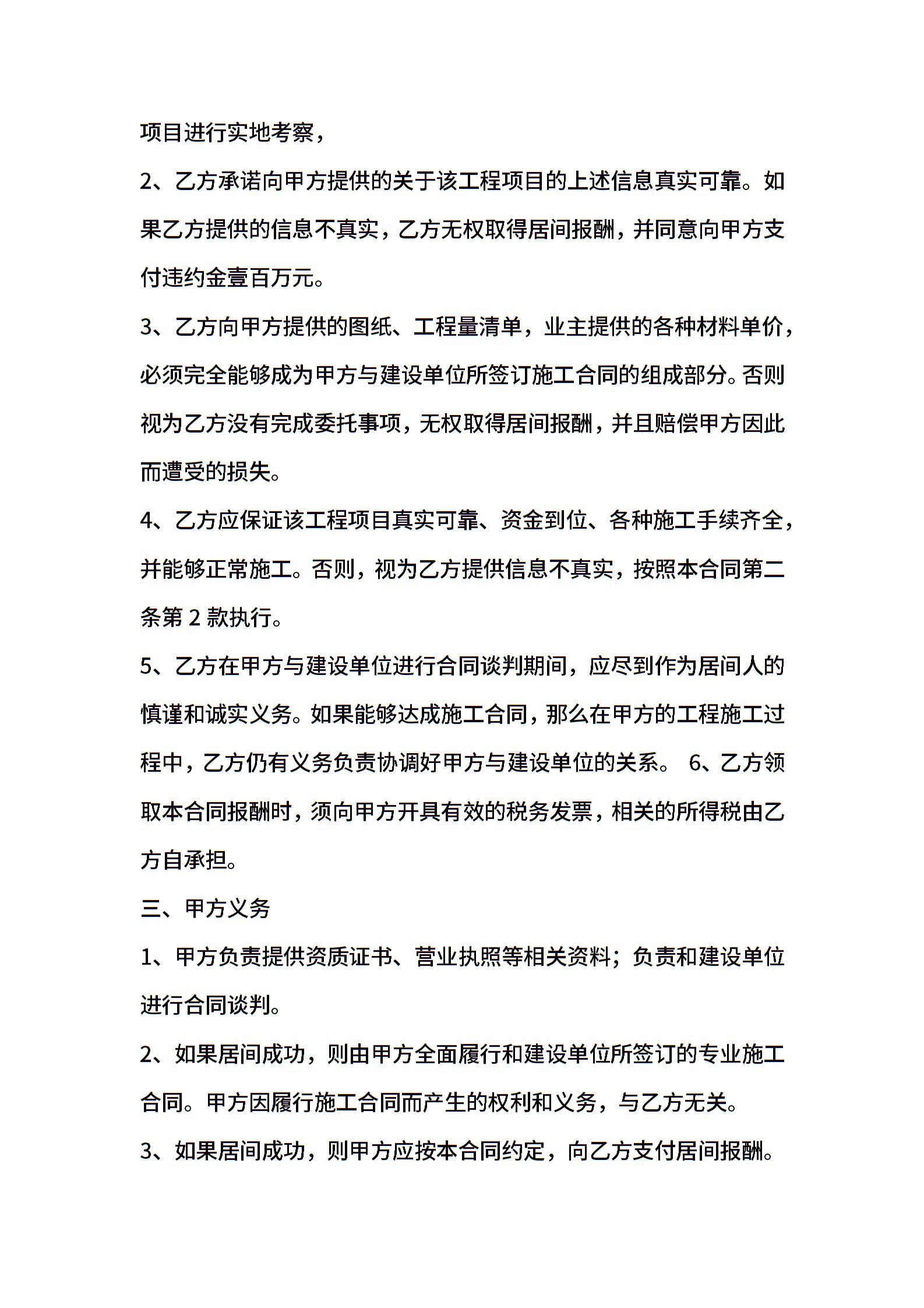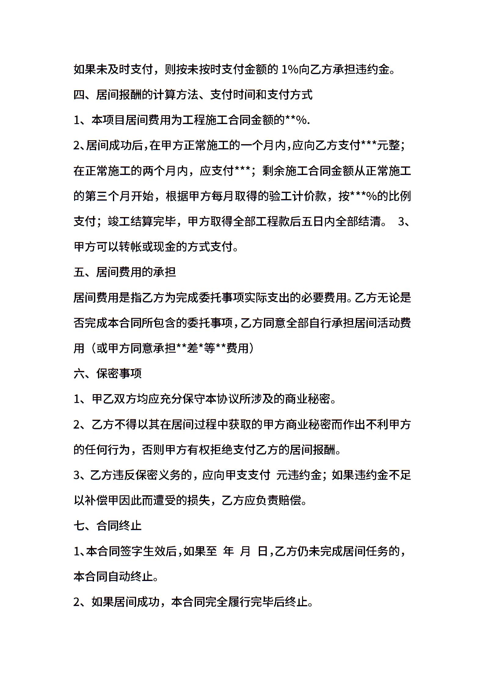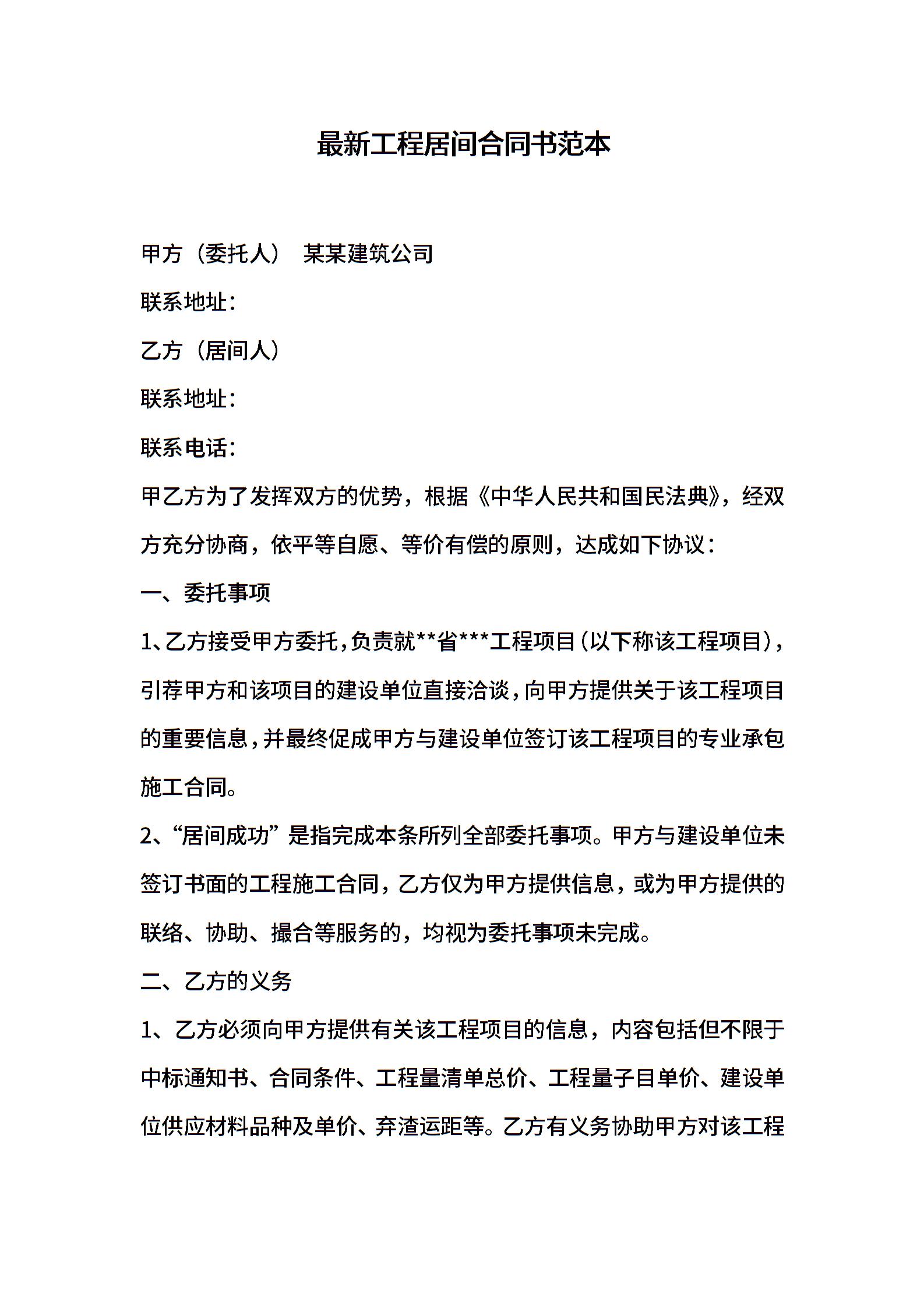最新工程居间合同书范本