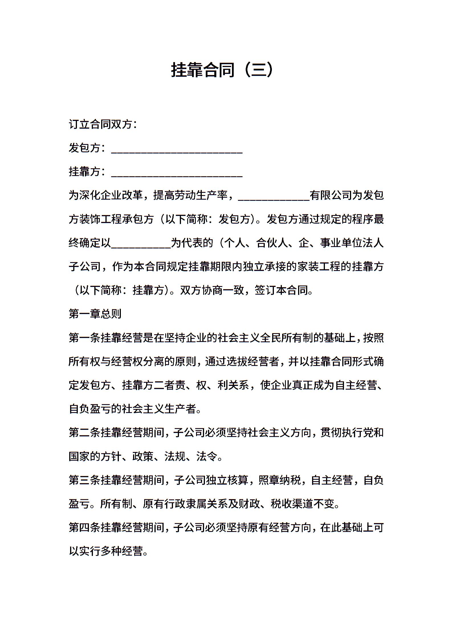 挂靠合同(三)