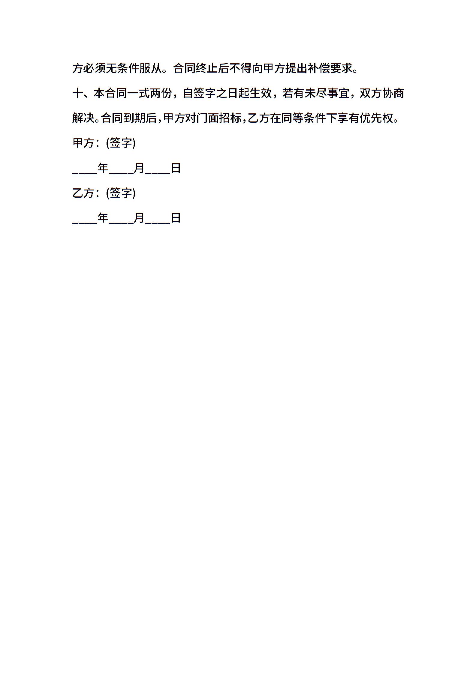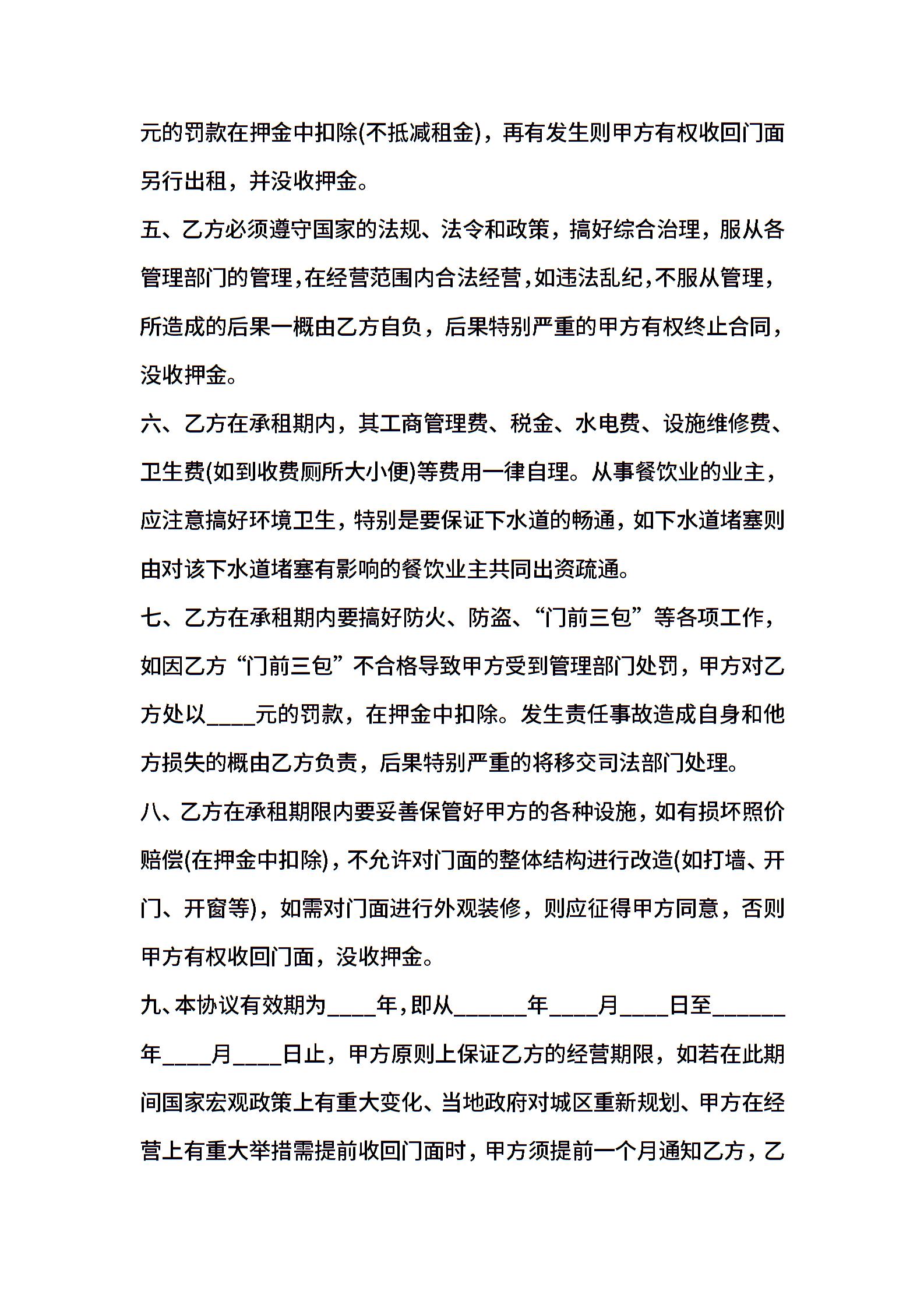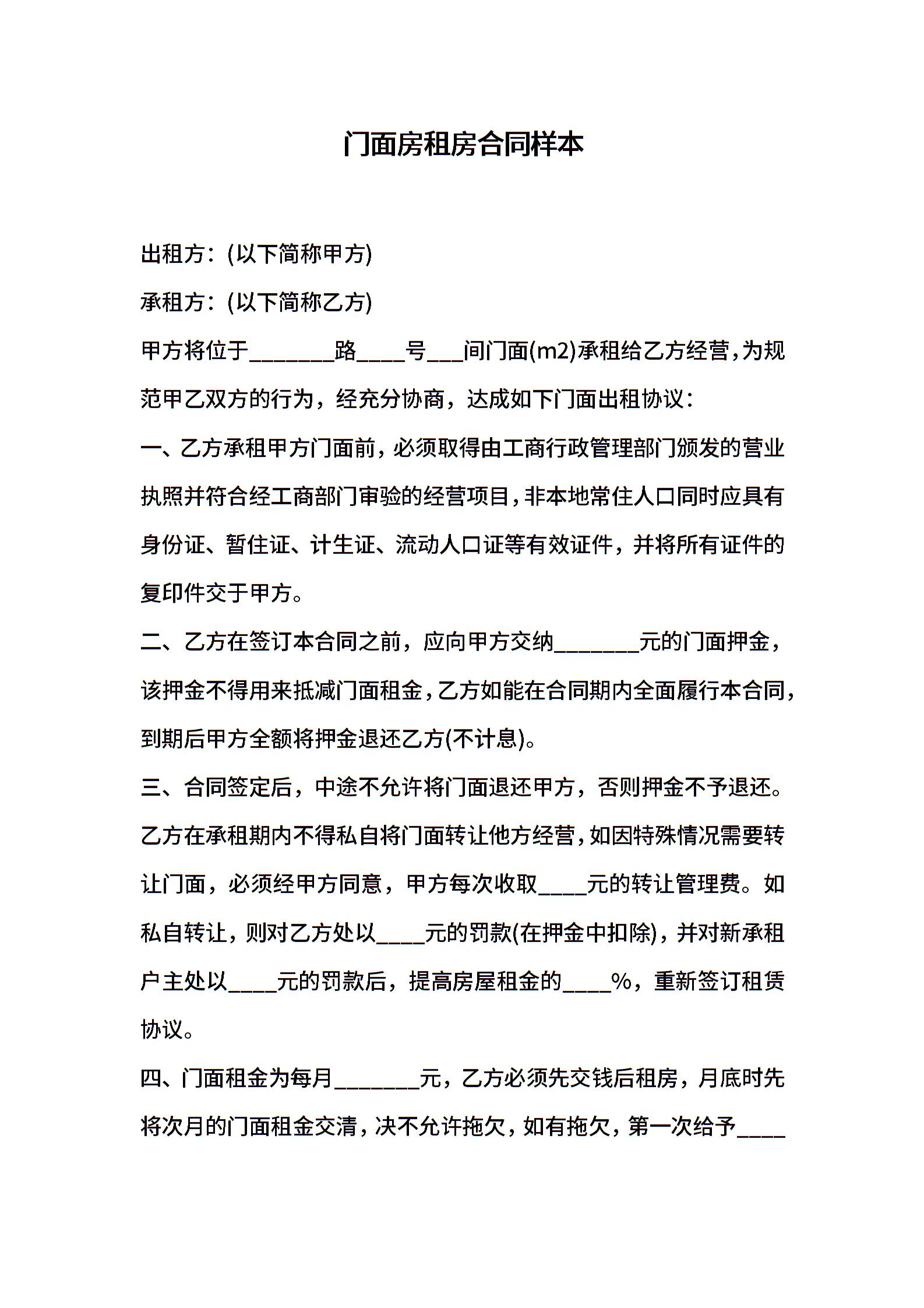 门面房租房合同样本