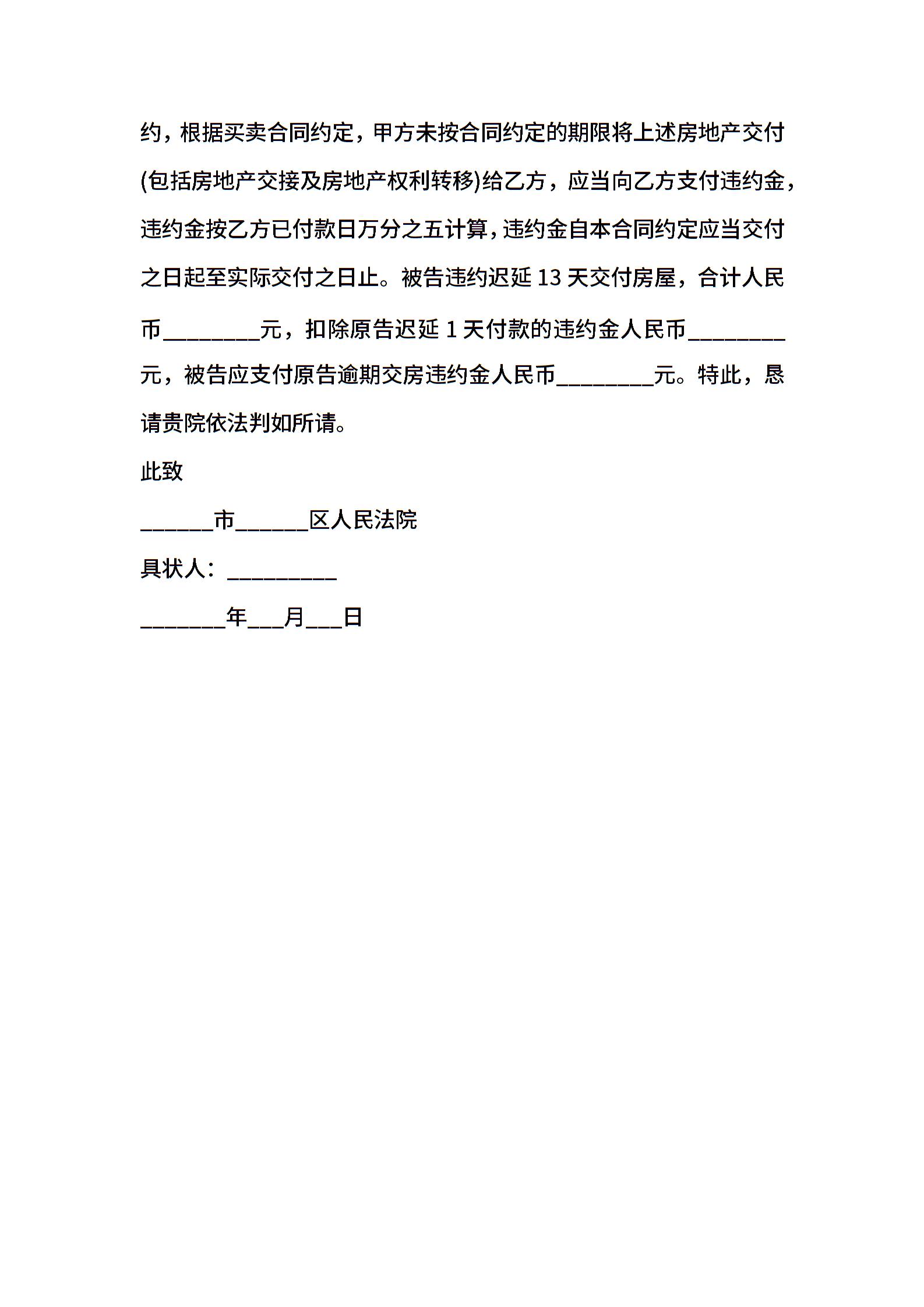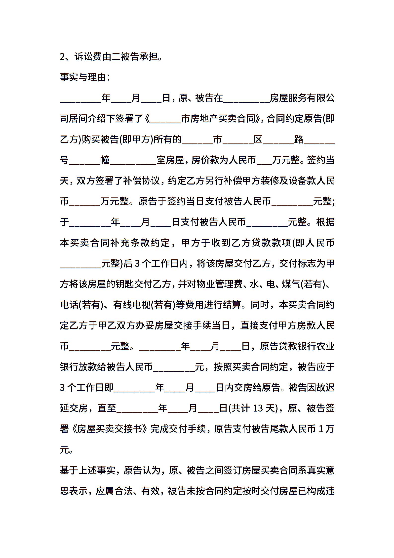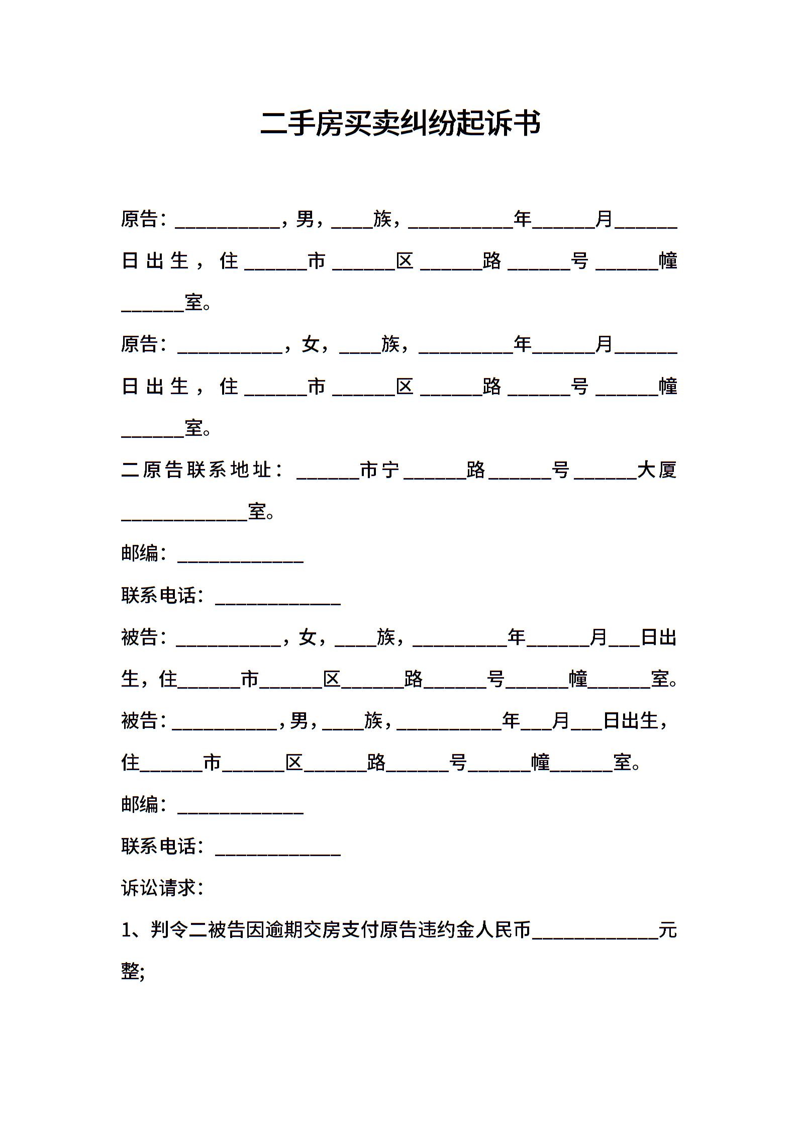 二手房买卖纠纷起诉书