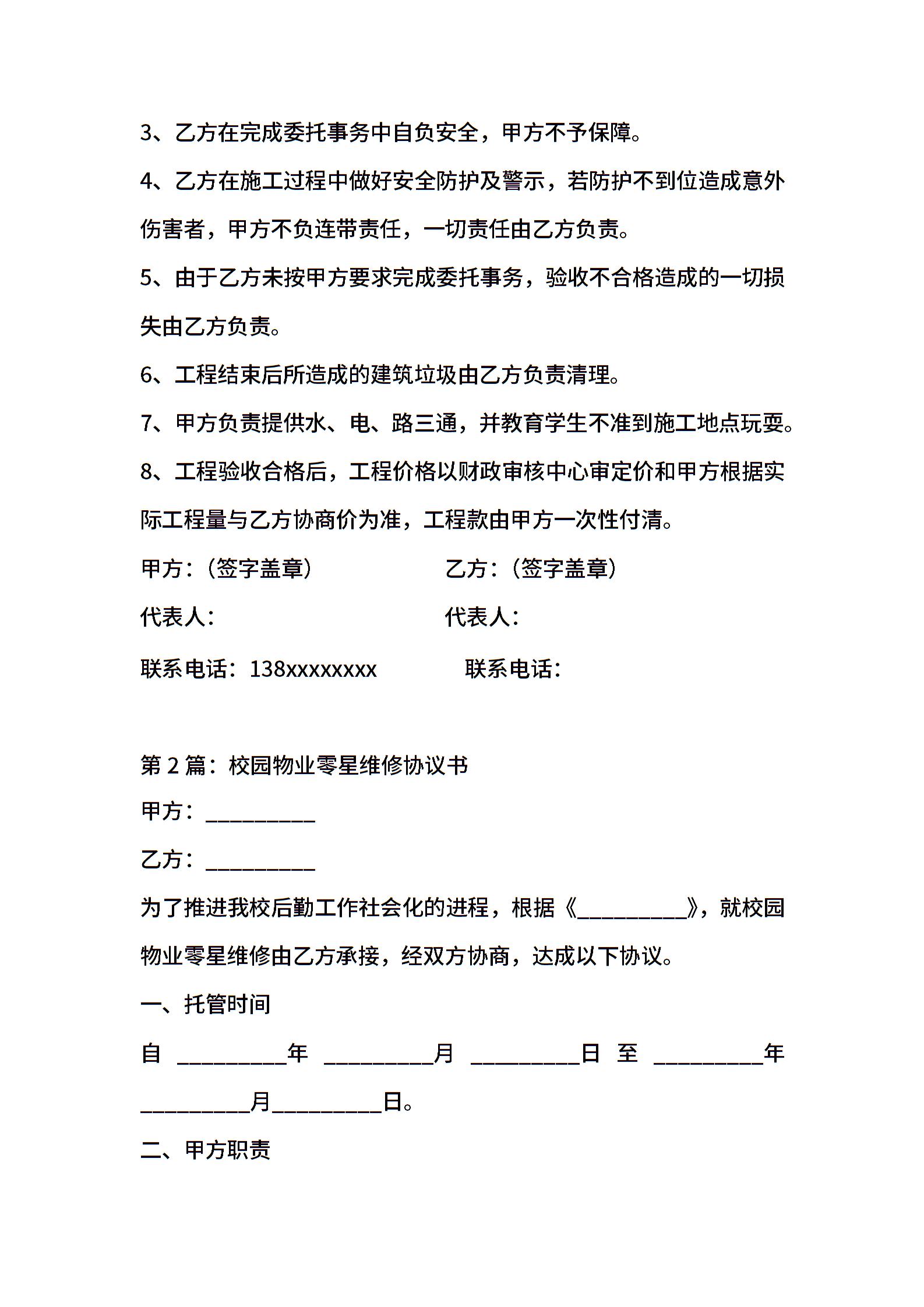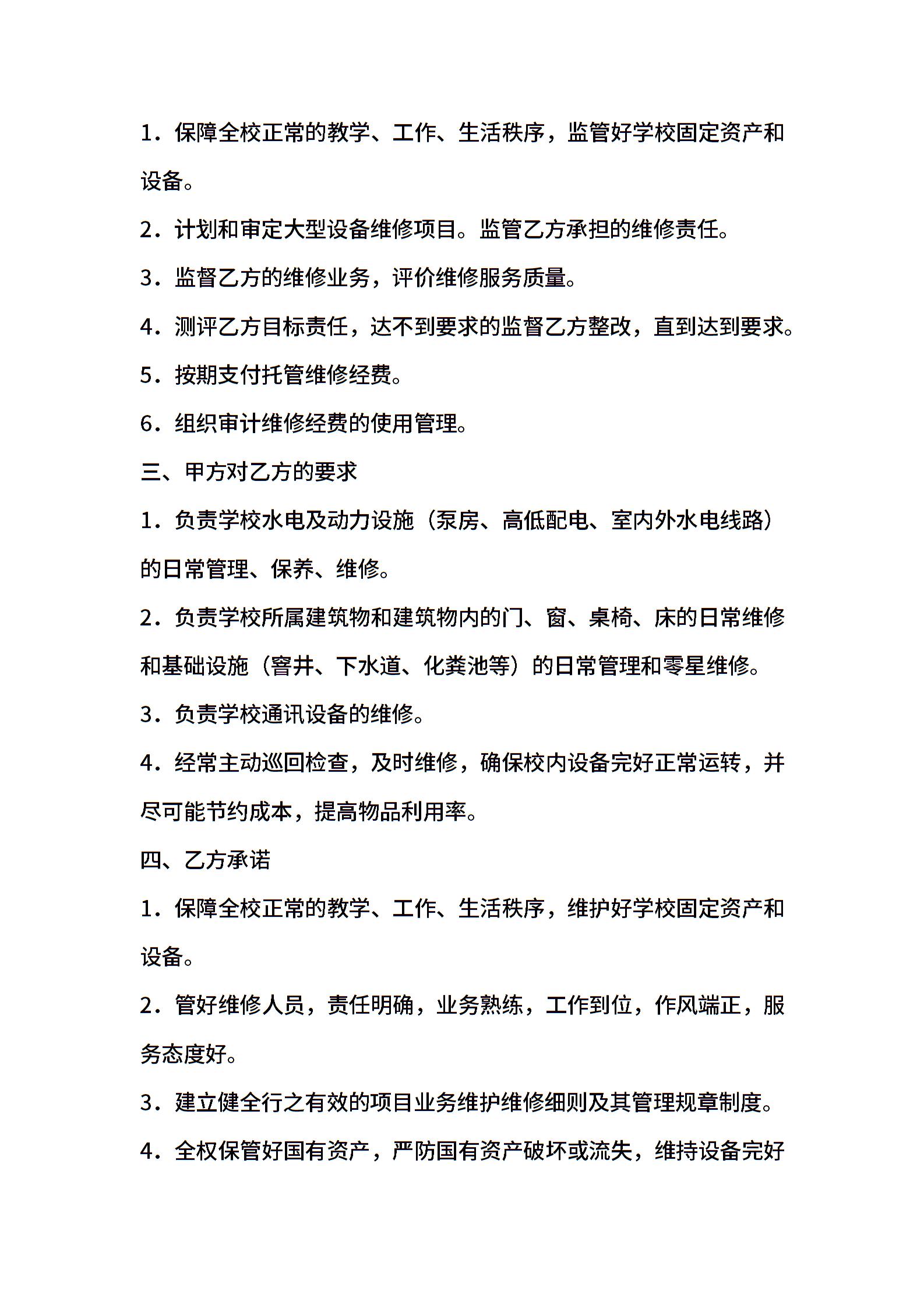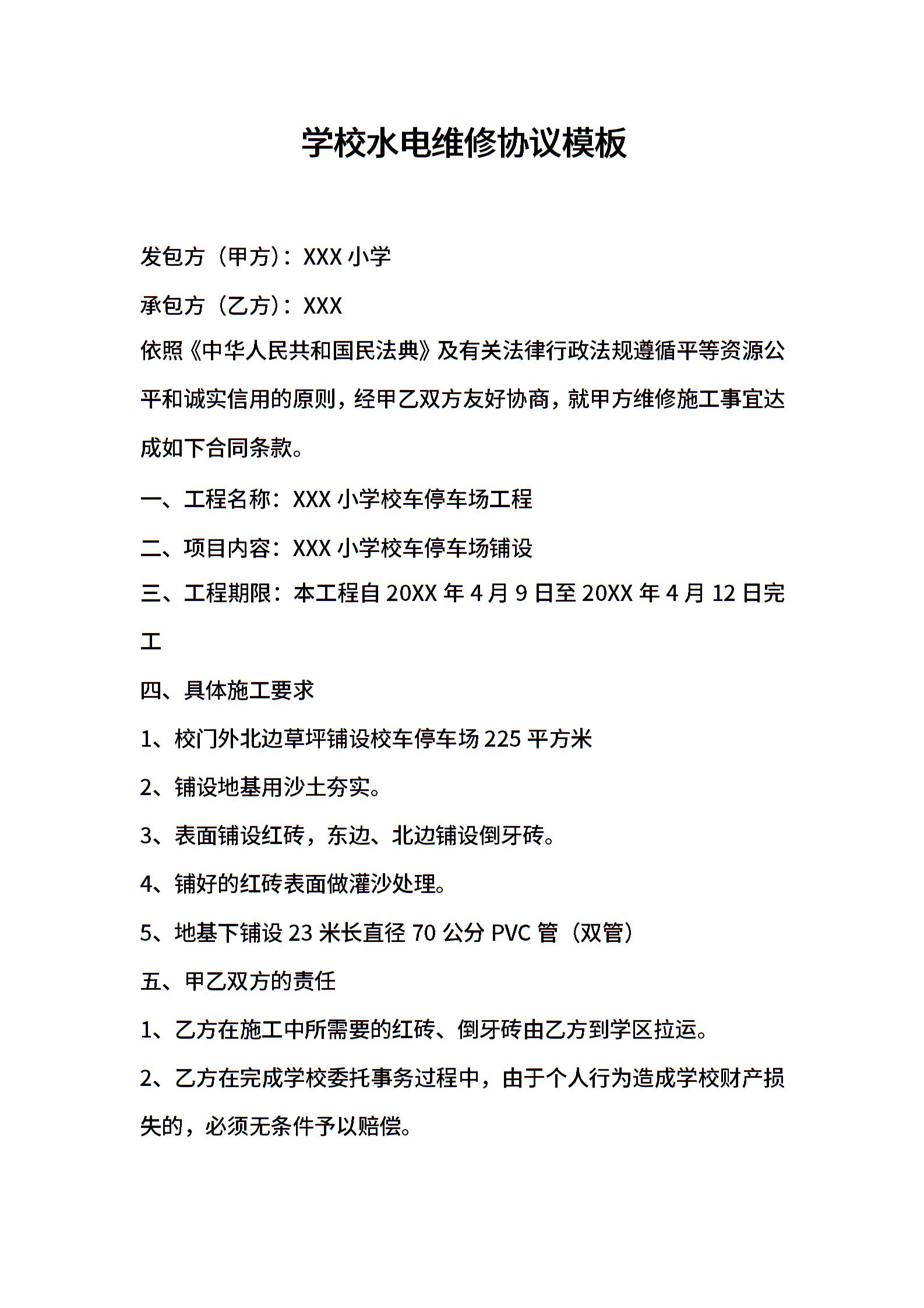 学校水电维修协议模板