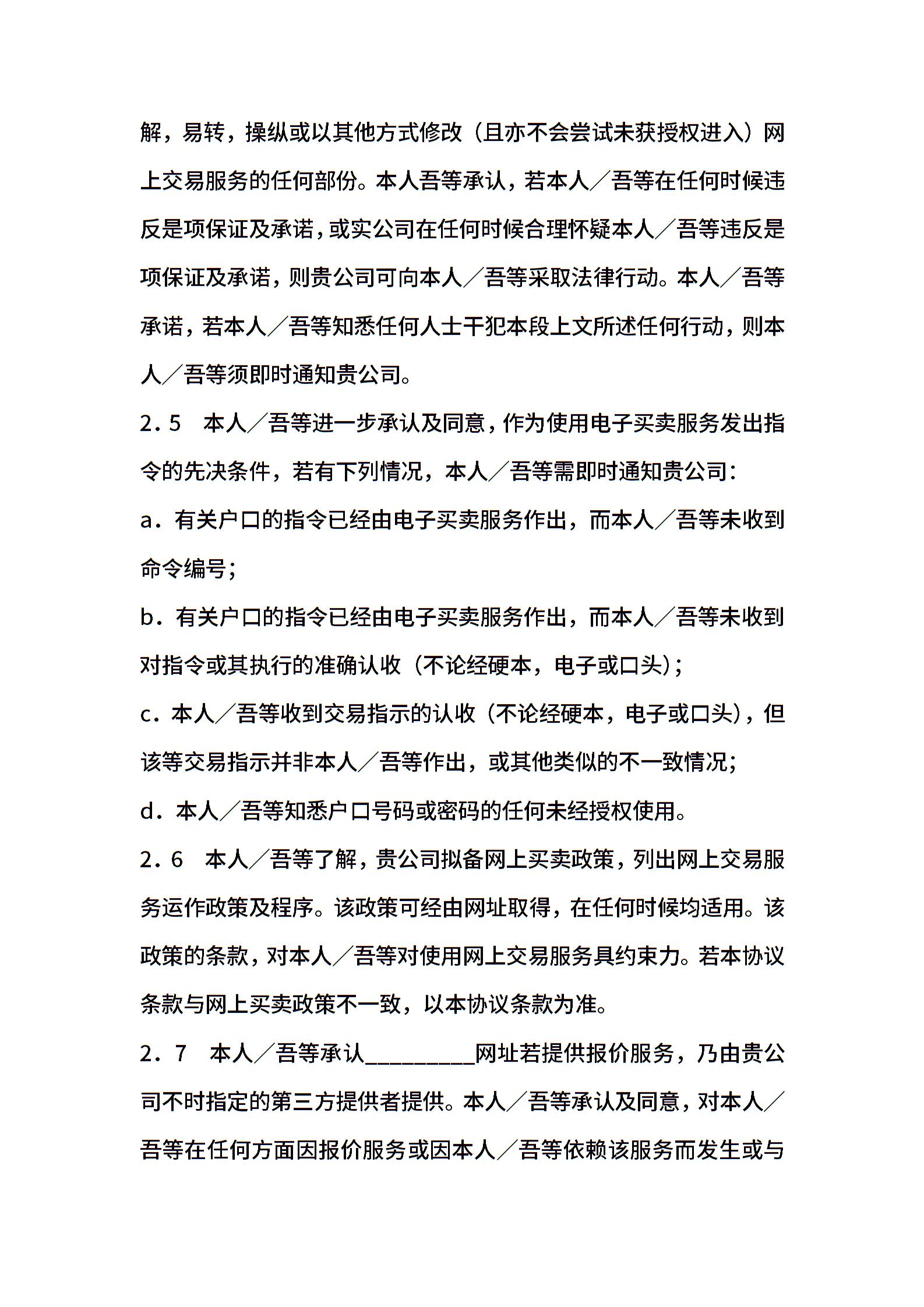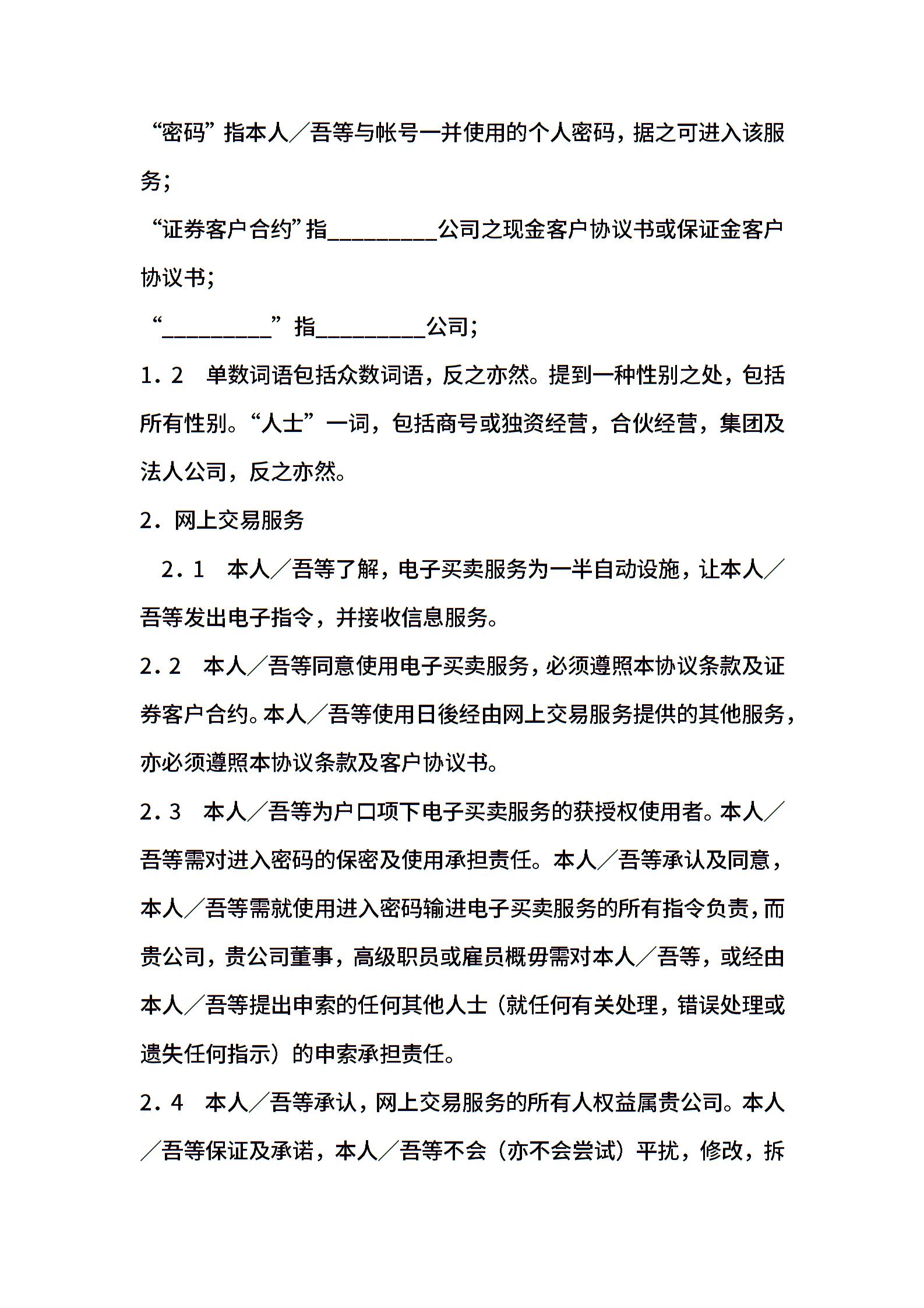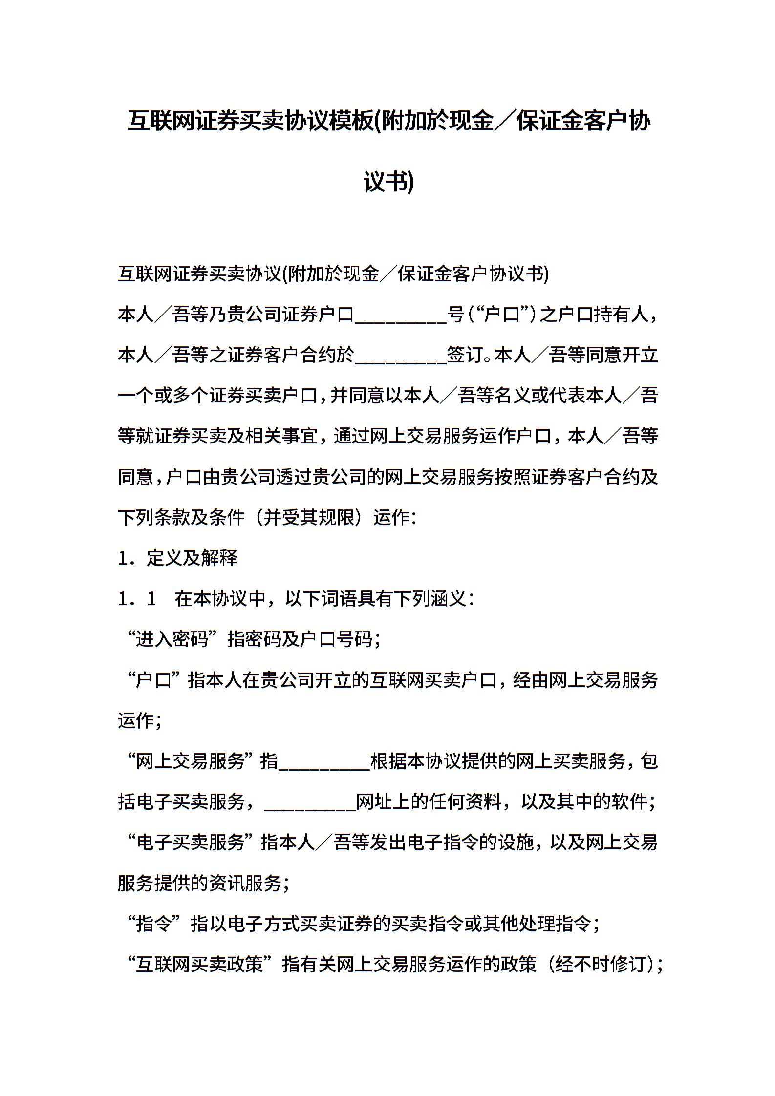 互联网证券买卖协议模板(附加於现金/保证金客户协议书)