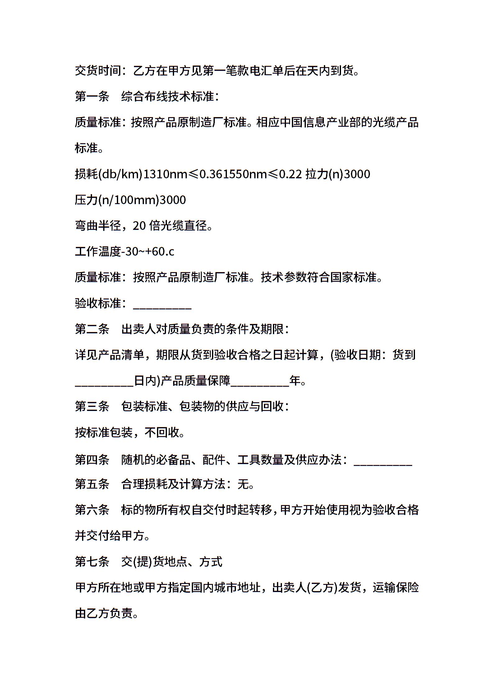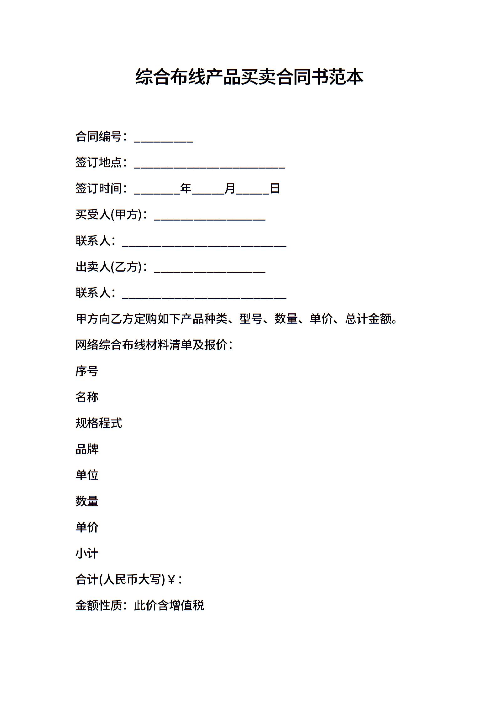 综合布线产品买卖合同书范本