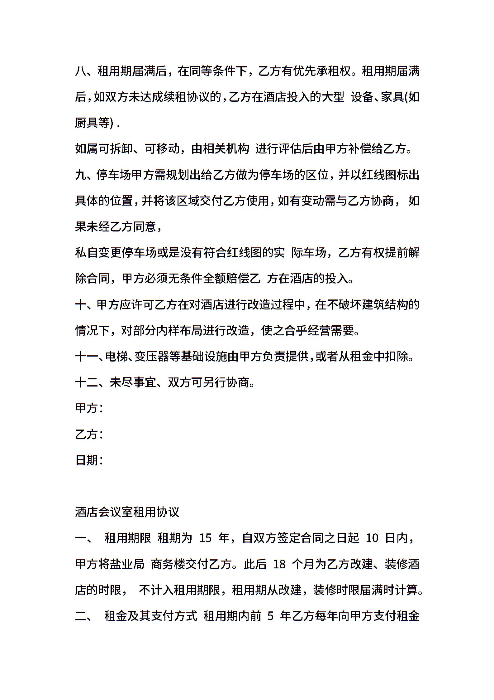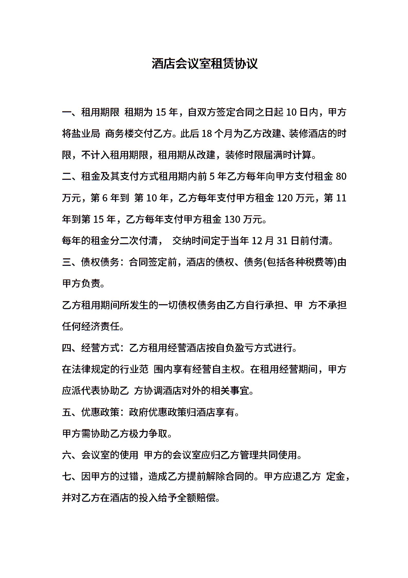 酒店会议室租赁协议