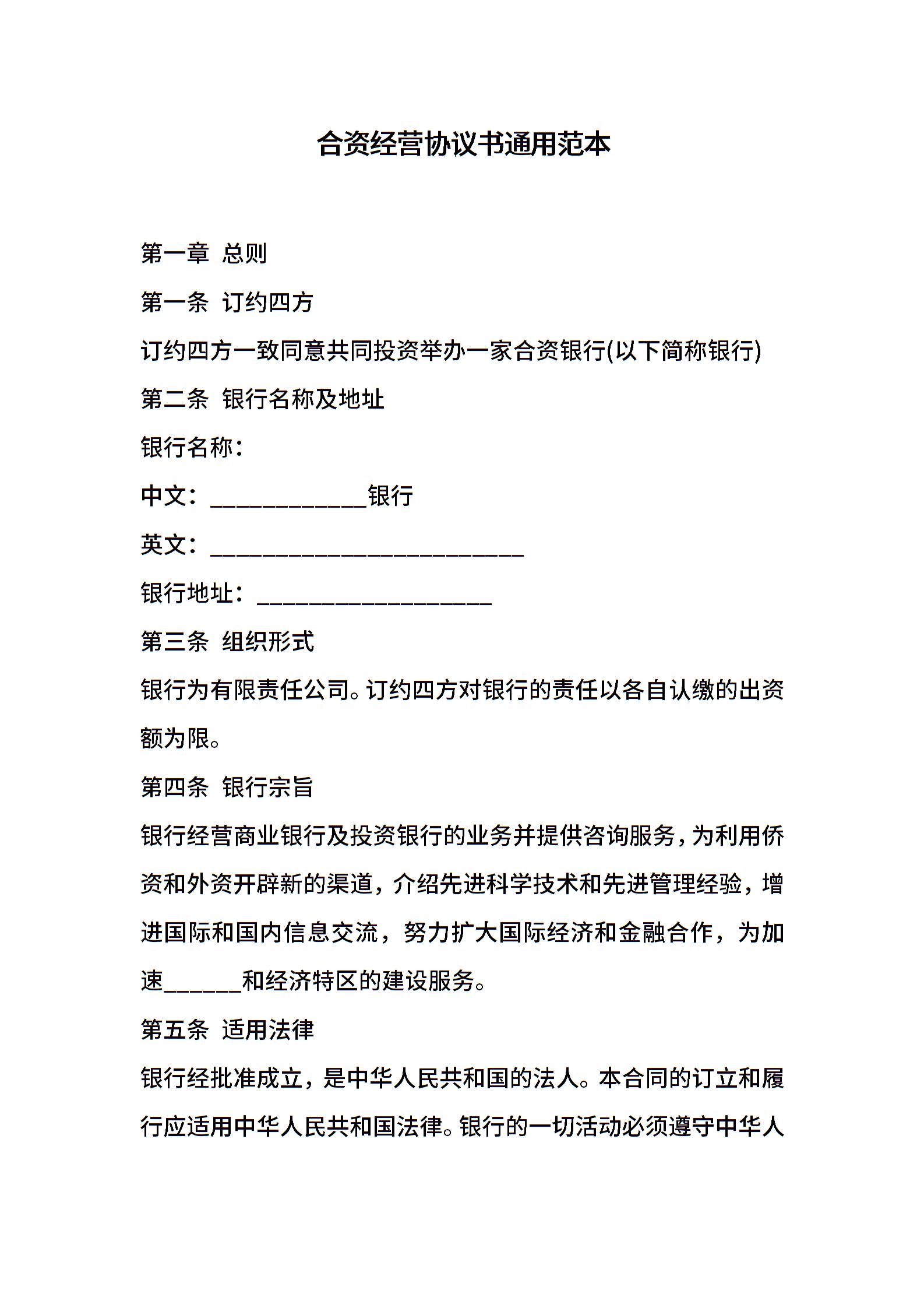 合资经营协议书通用范本