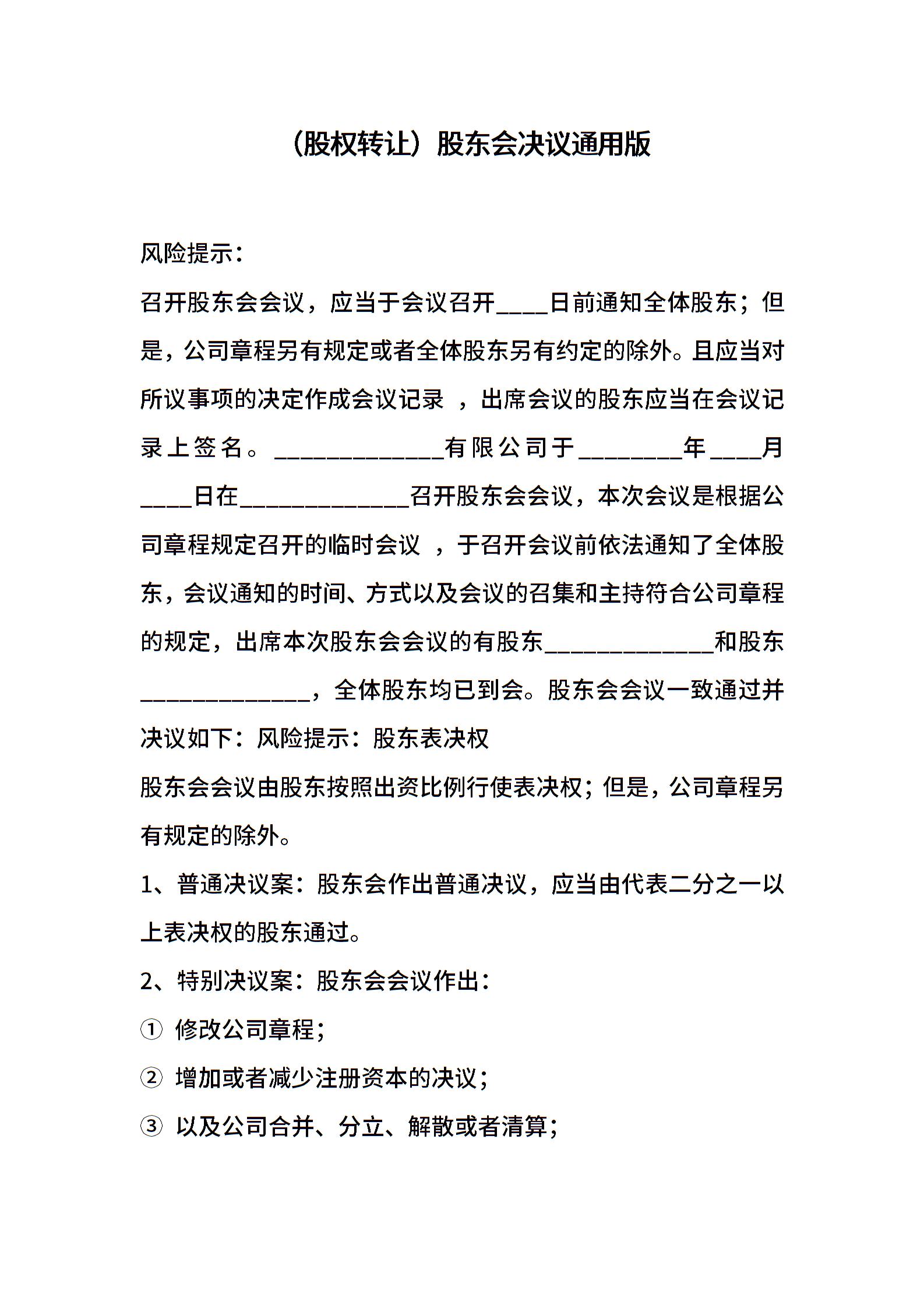当前位置:量子办公 > 合同模板 > 股东会决议 >