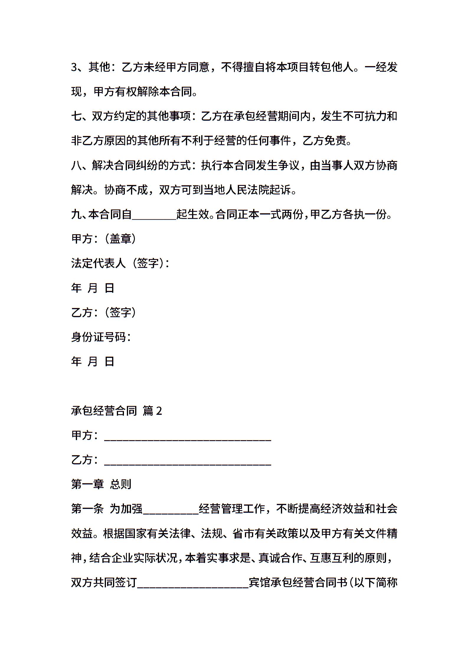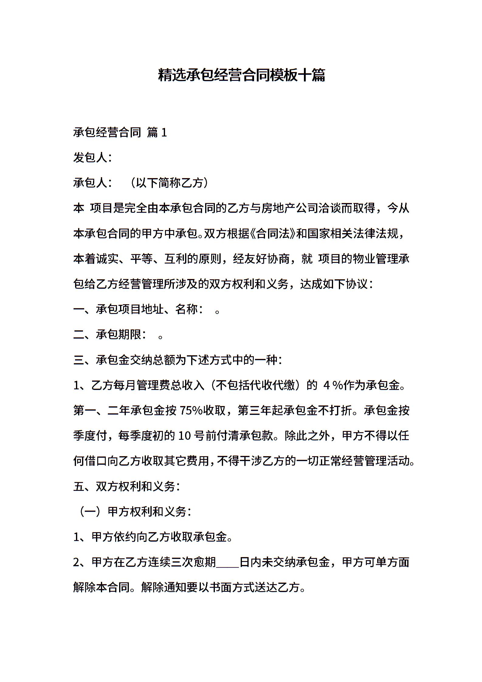 精选承包经营合同模板十篇