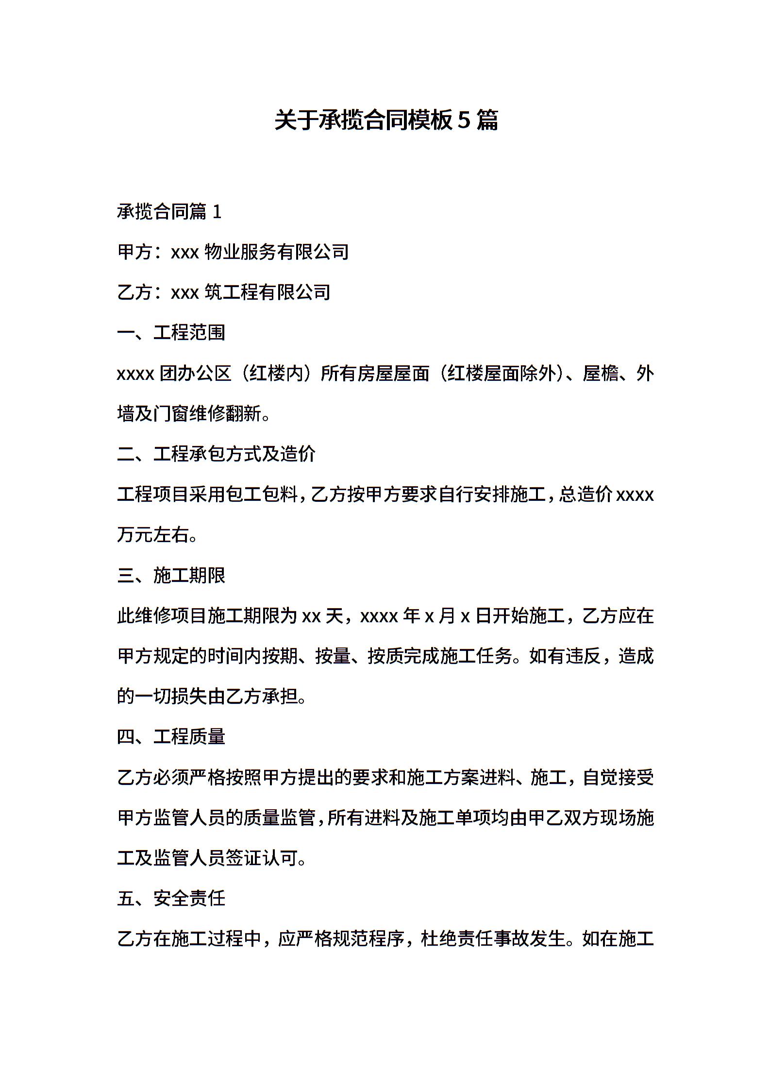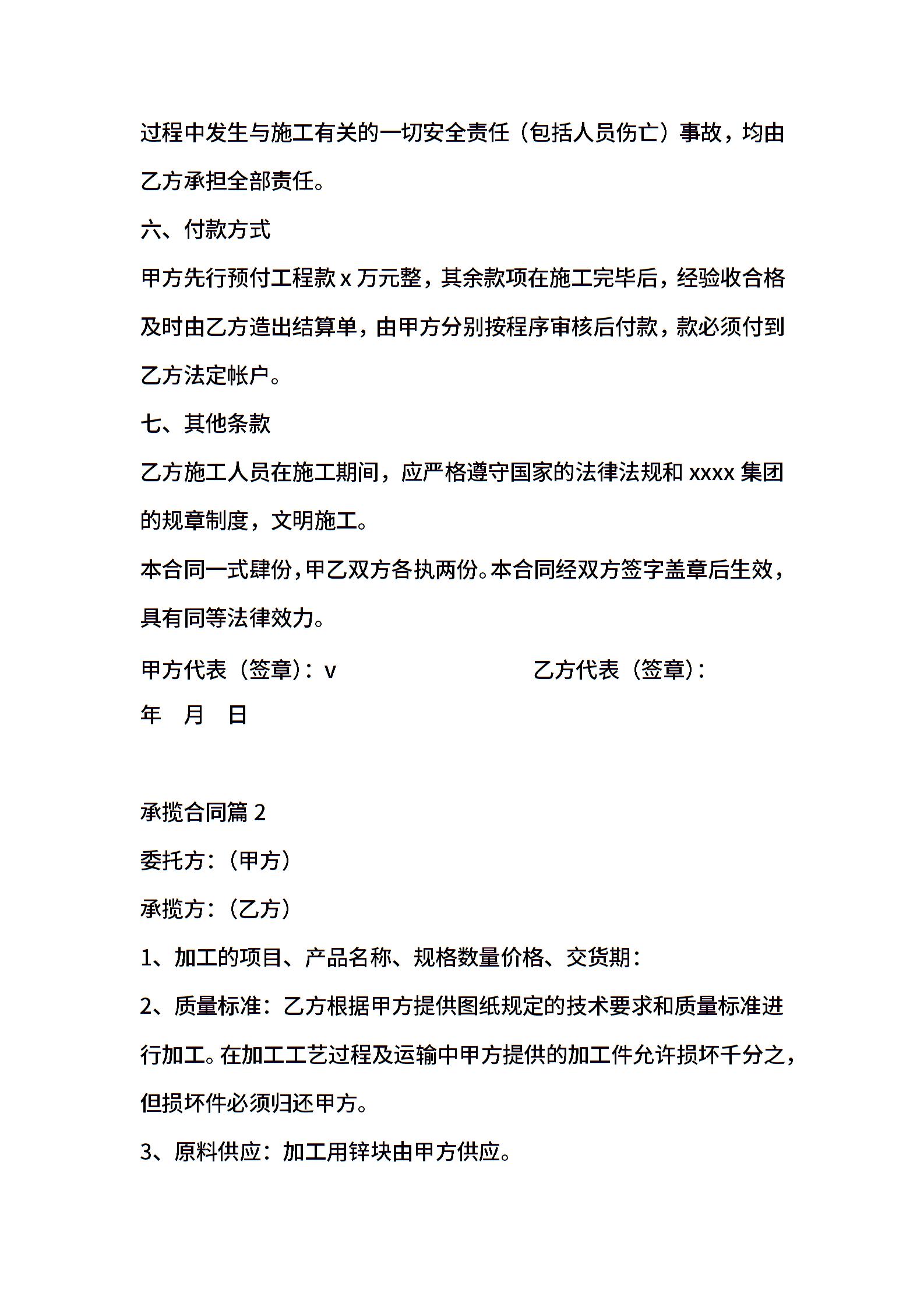 关于承揽合同模板5篇