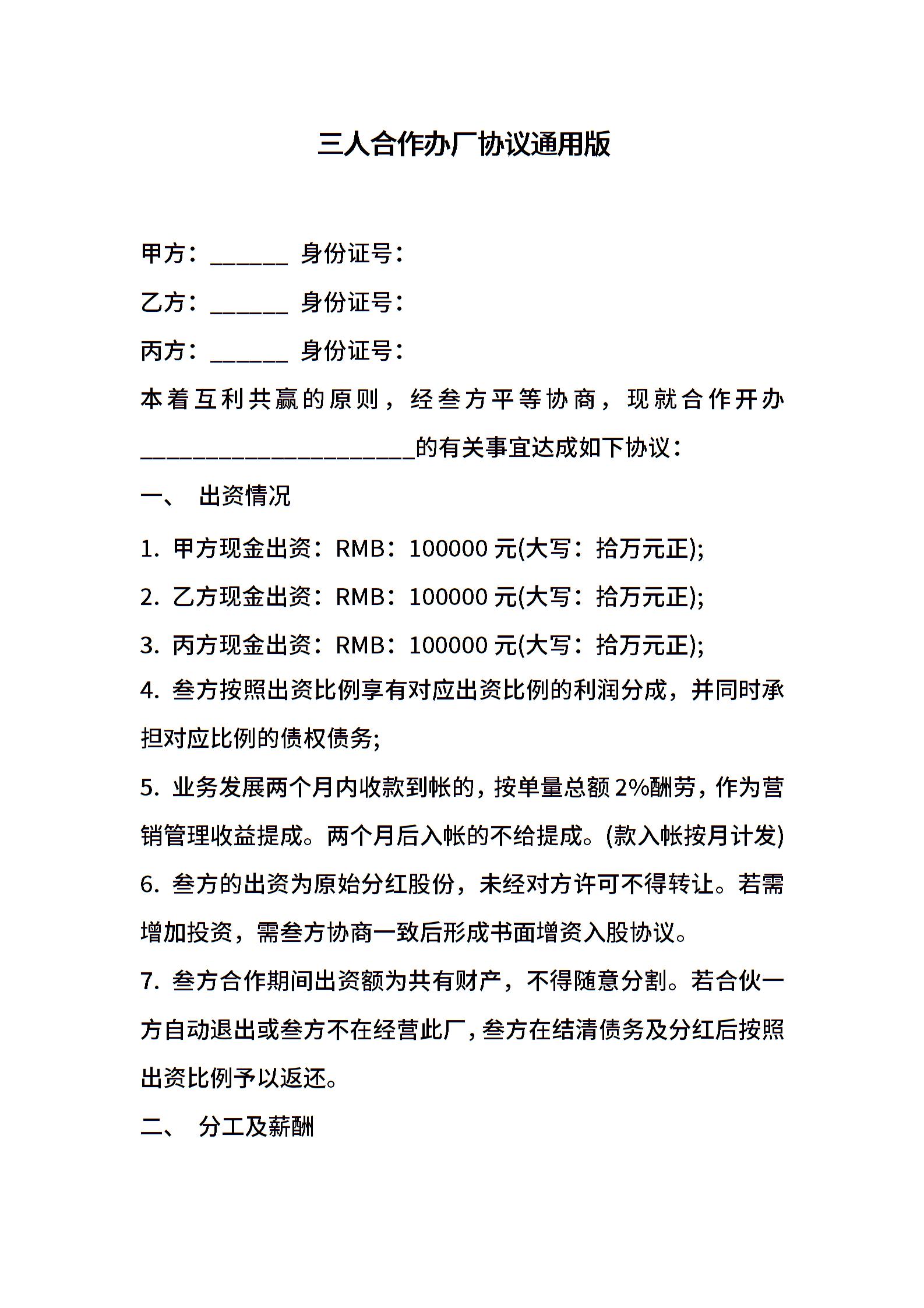 当前位置:量子办公 > 合同模板 > 合作合同 >