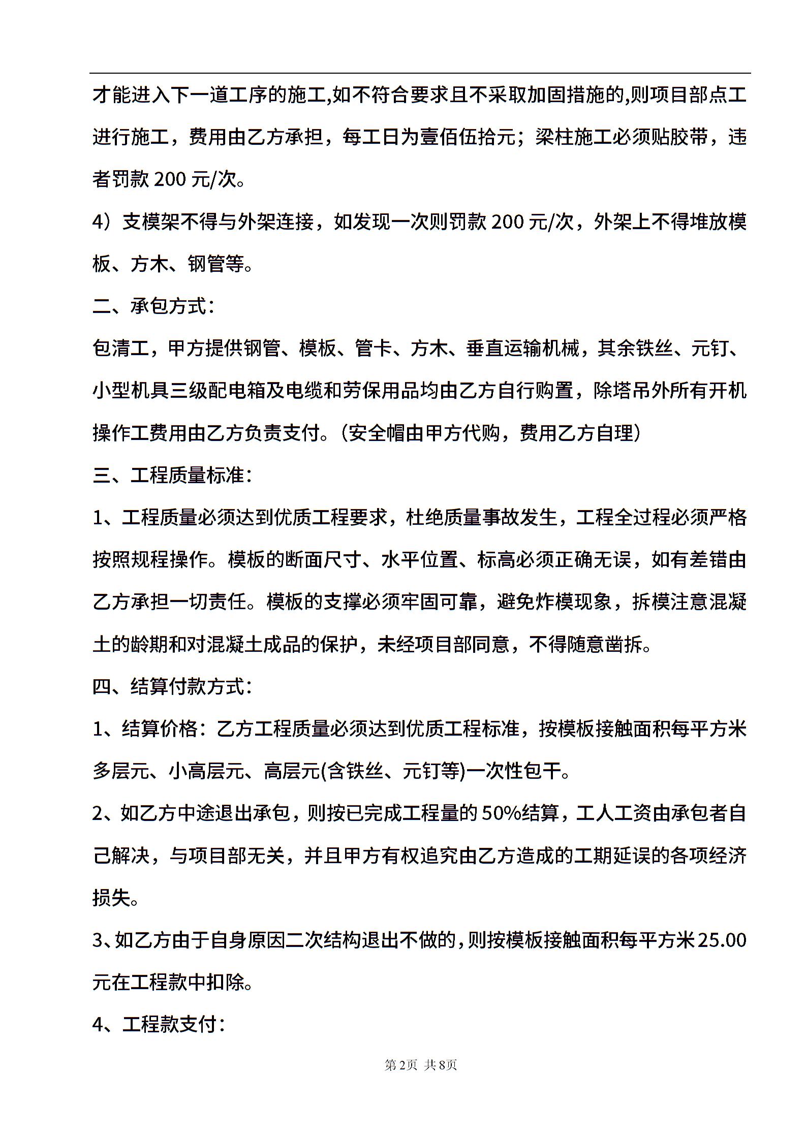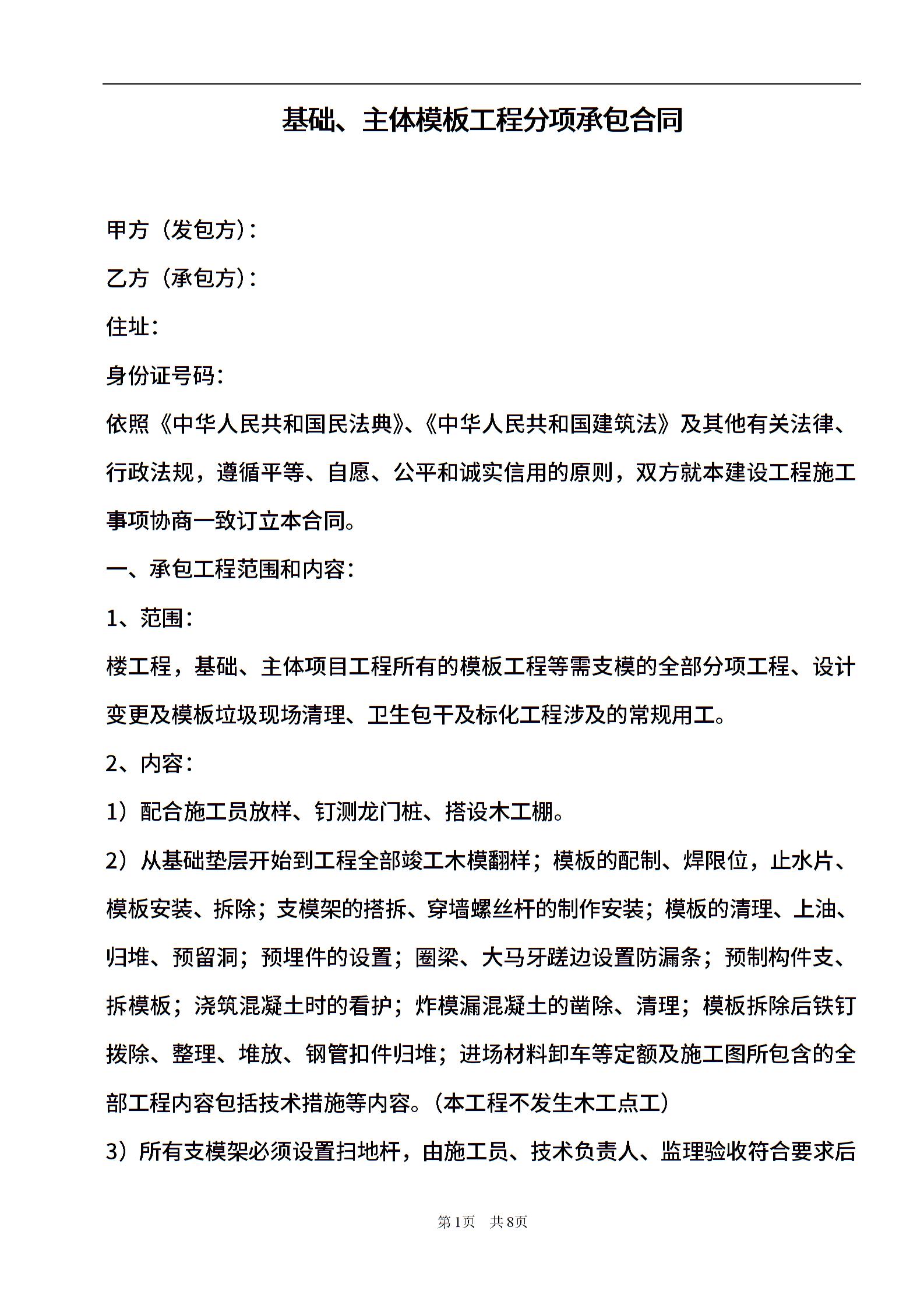 模板工程分项承包合同