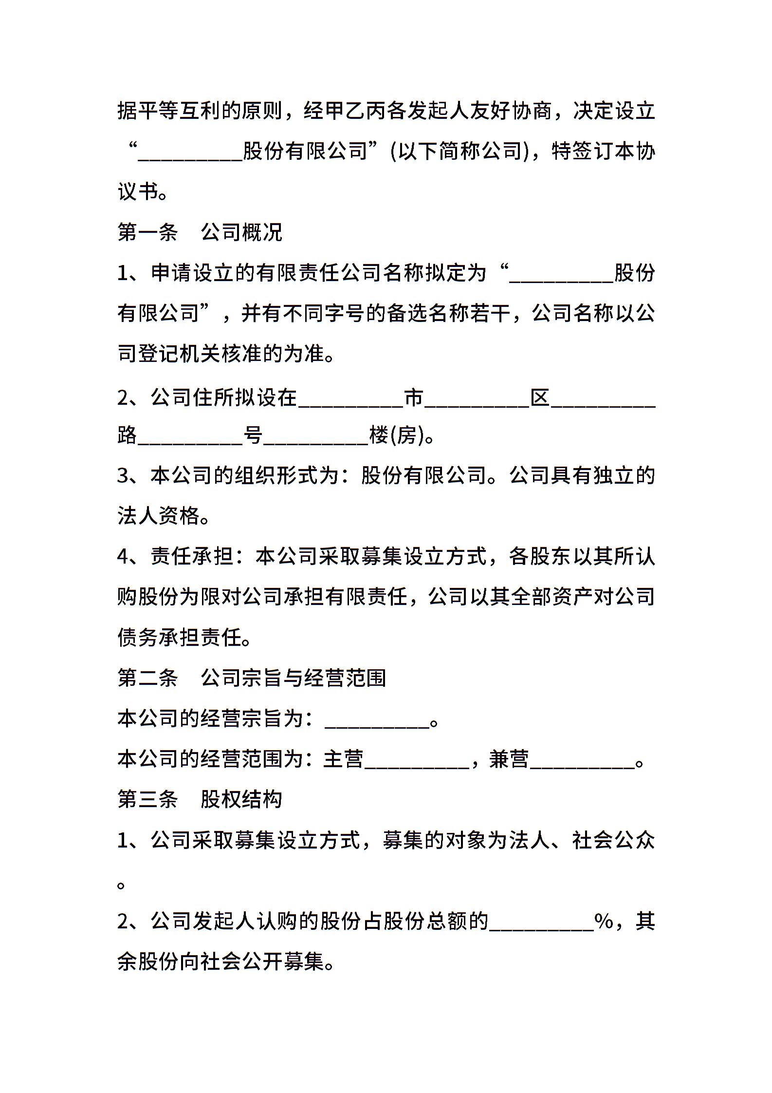 设立股份有限公司出资协议书范本