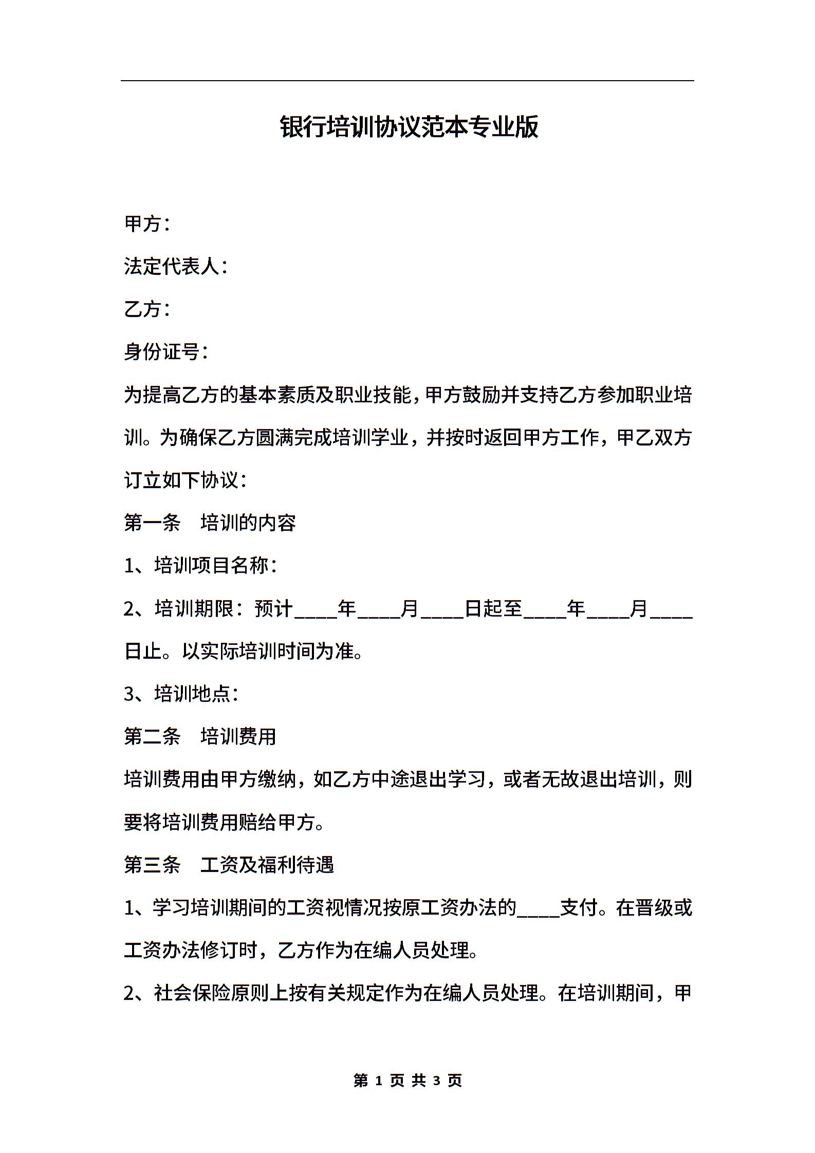 当前位置:量子办公 > 合同模板 > 培训协议 >