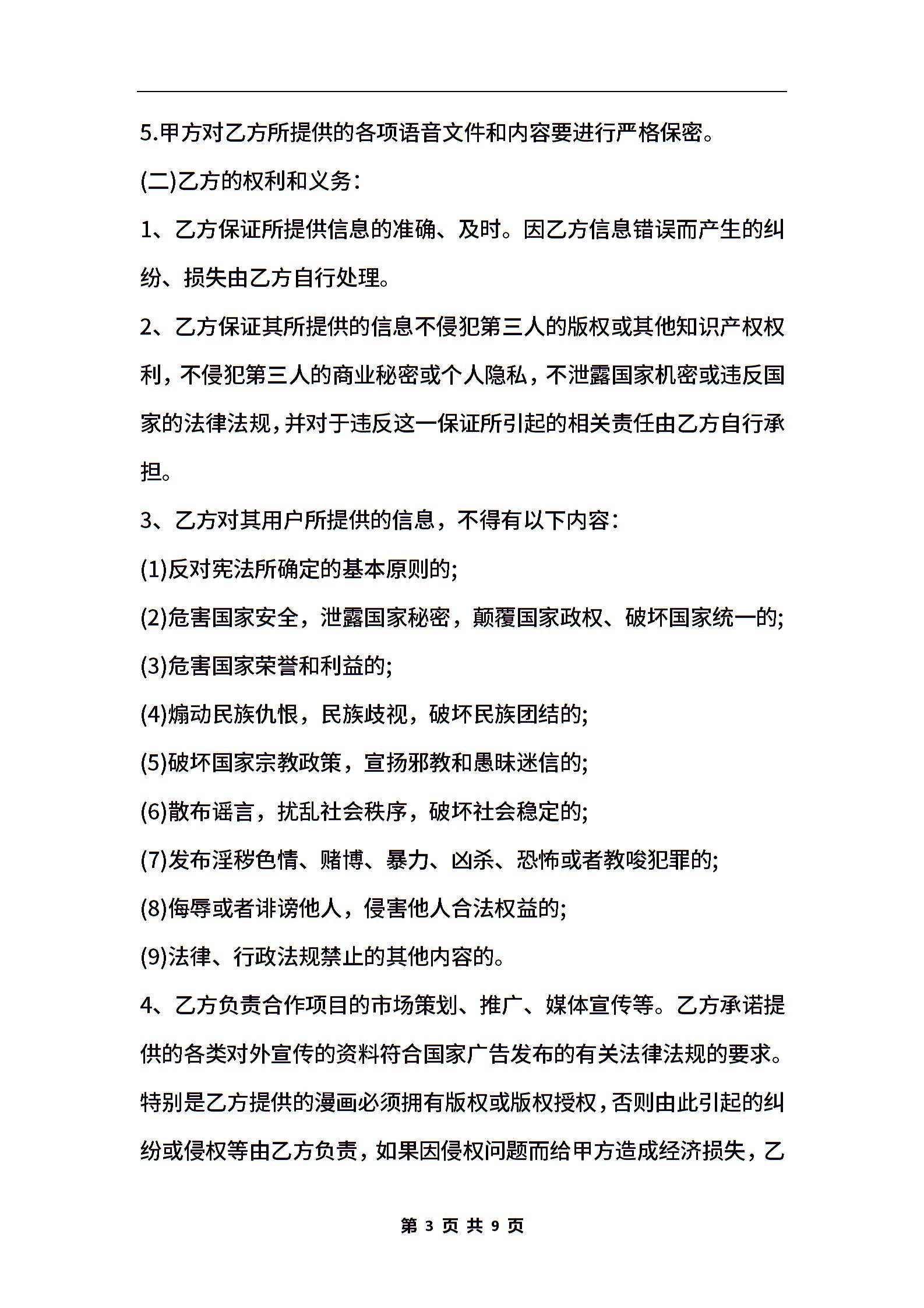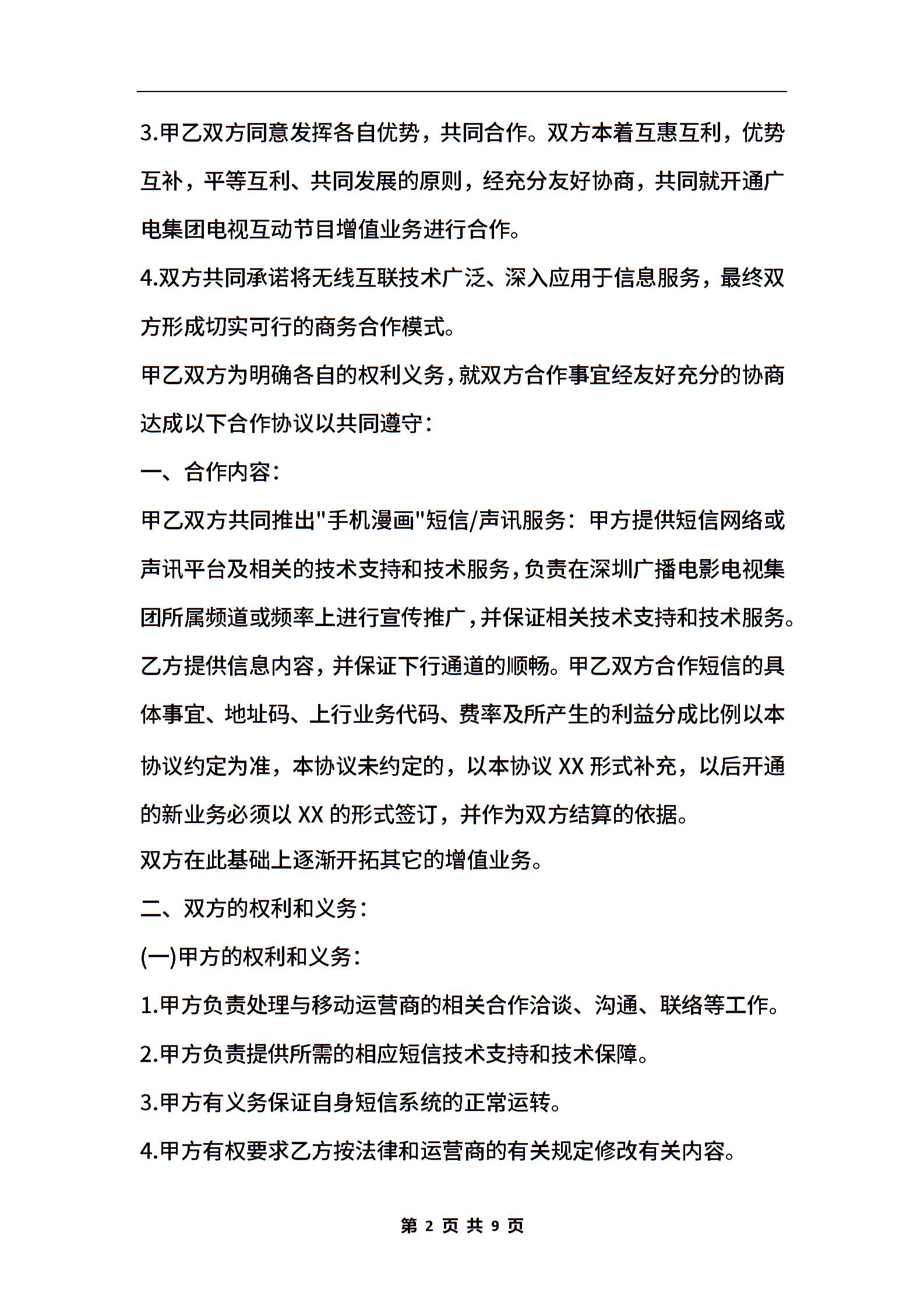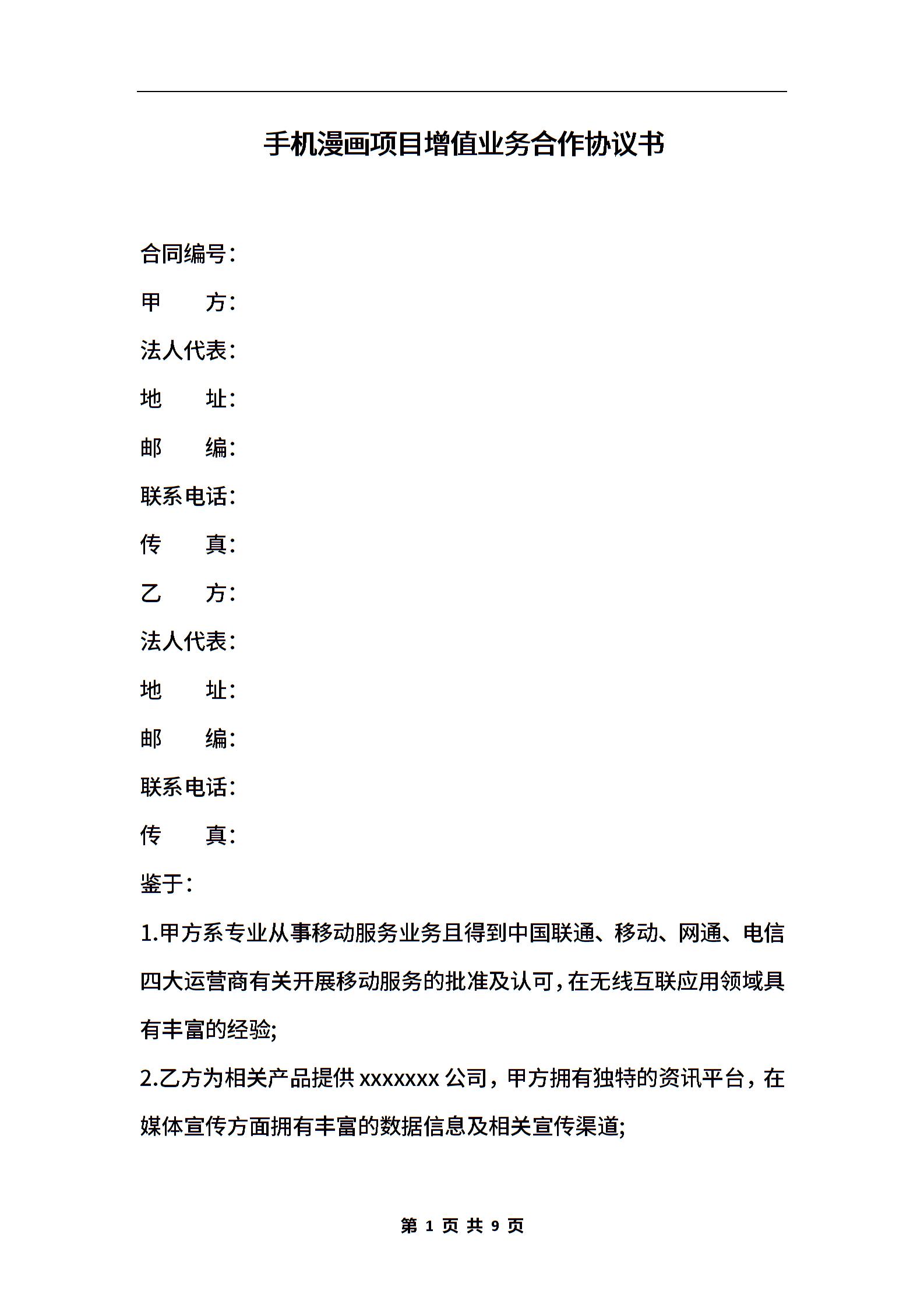 手机漫画项目增值业务合作协议书