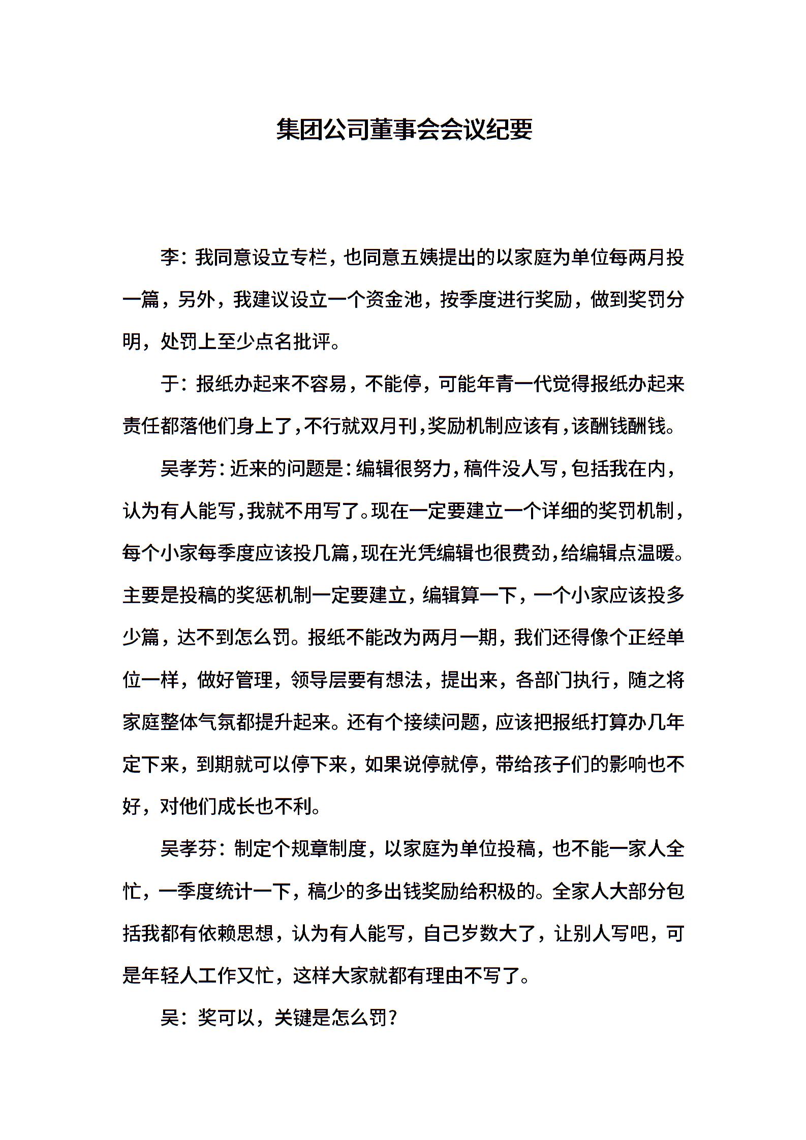 集团公司董事会会议纪要