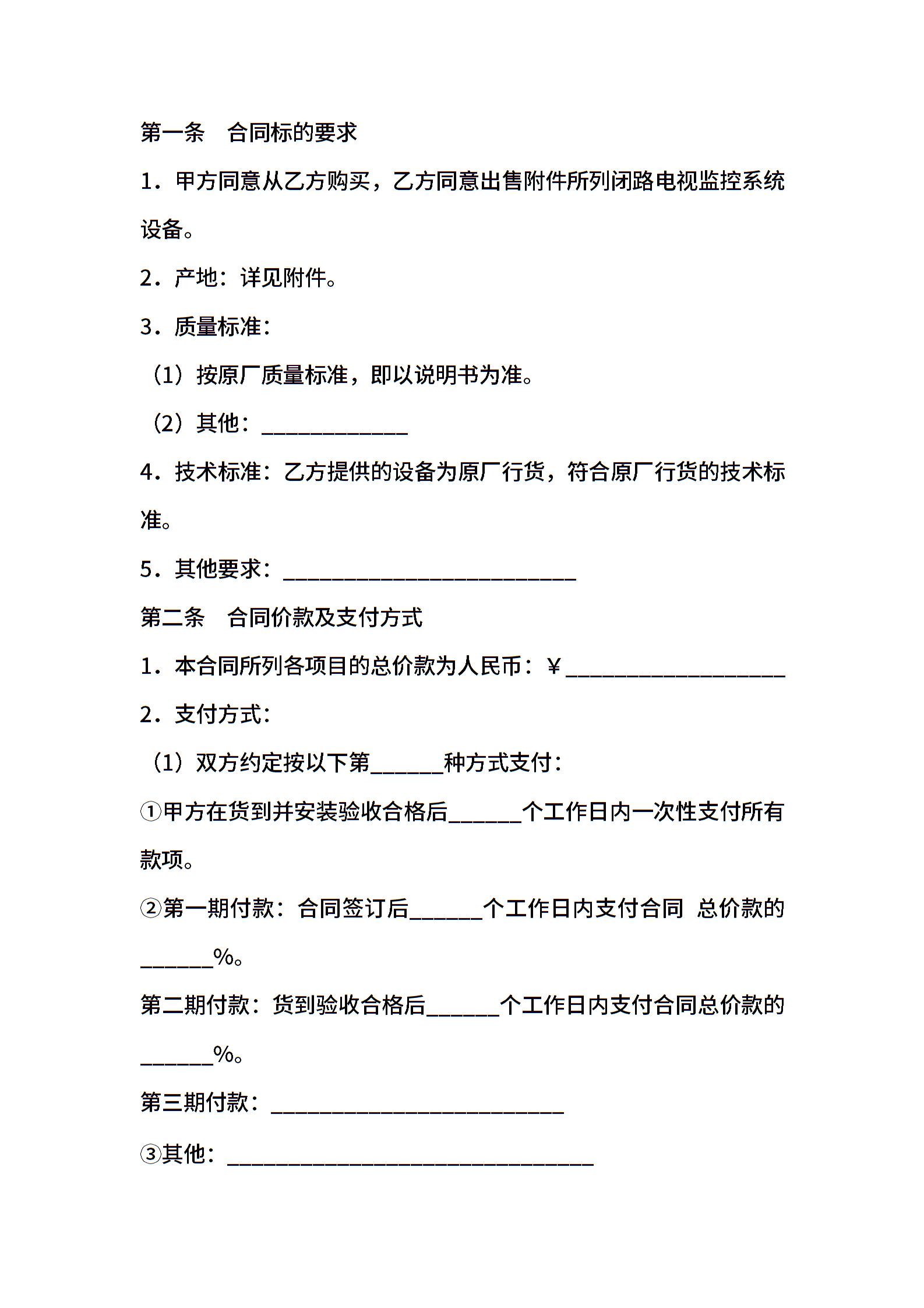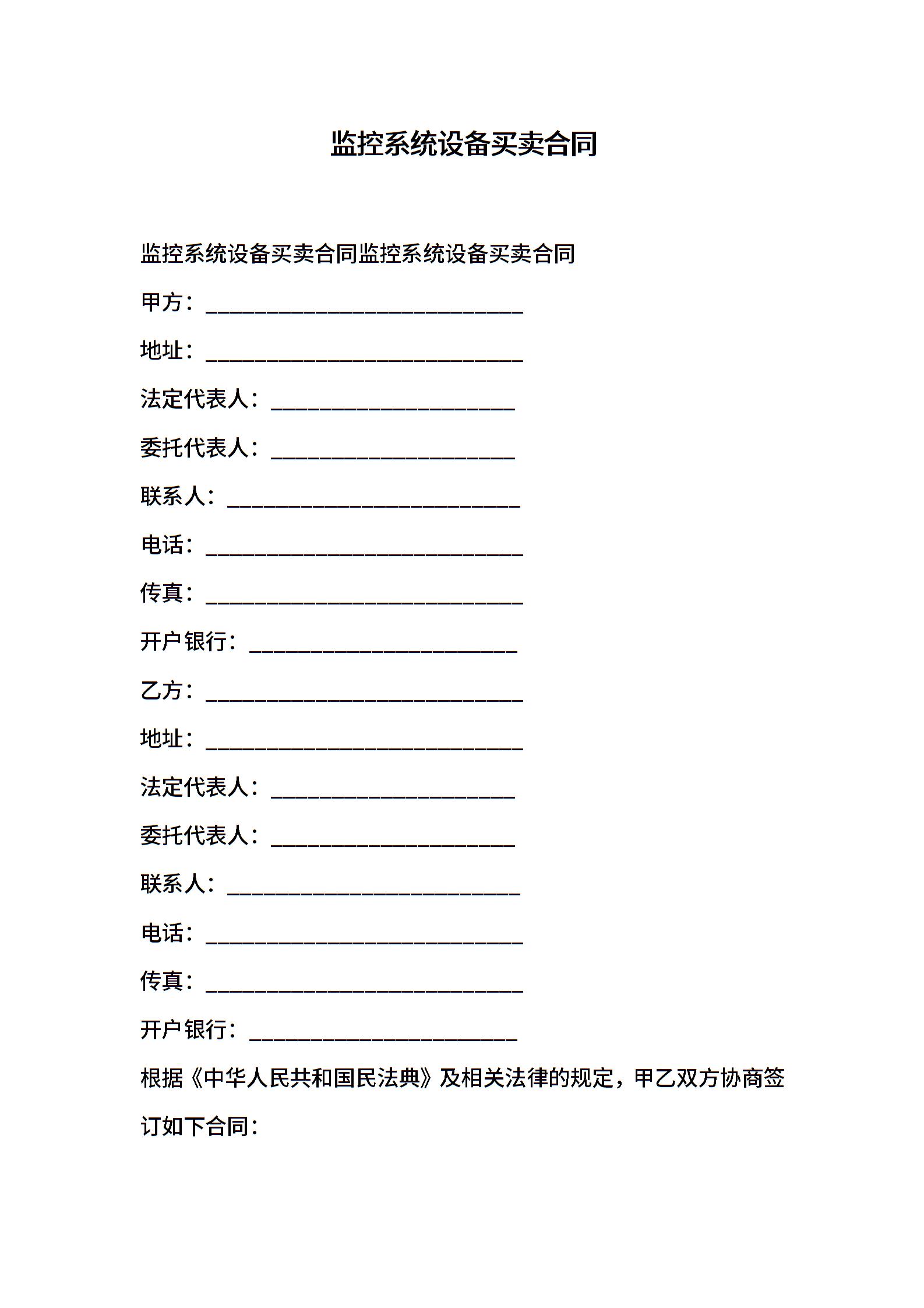 监控系统设备买卖合同