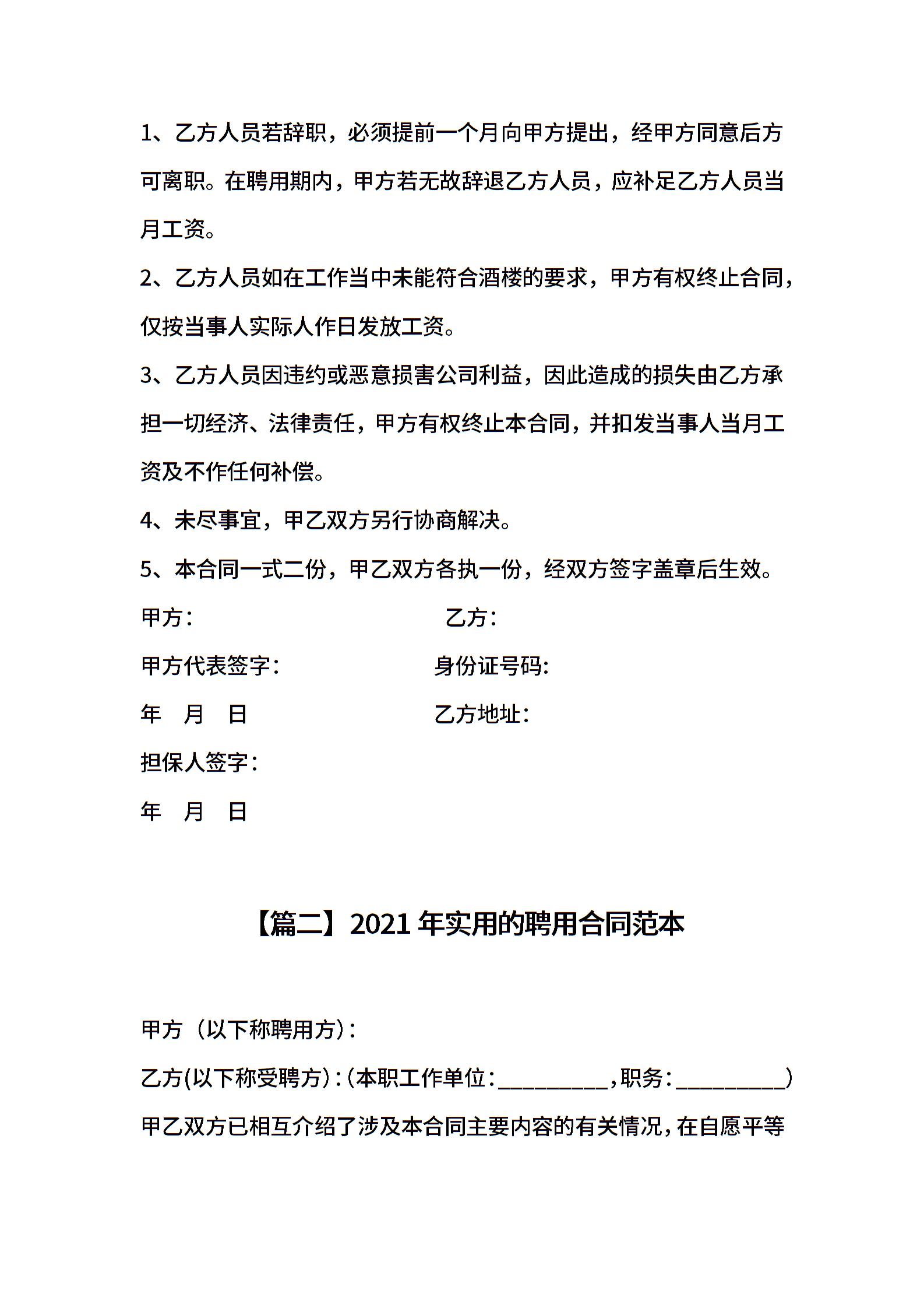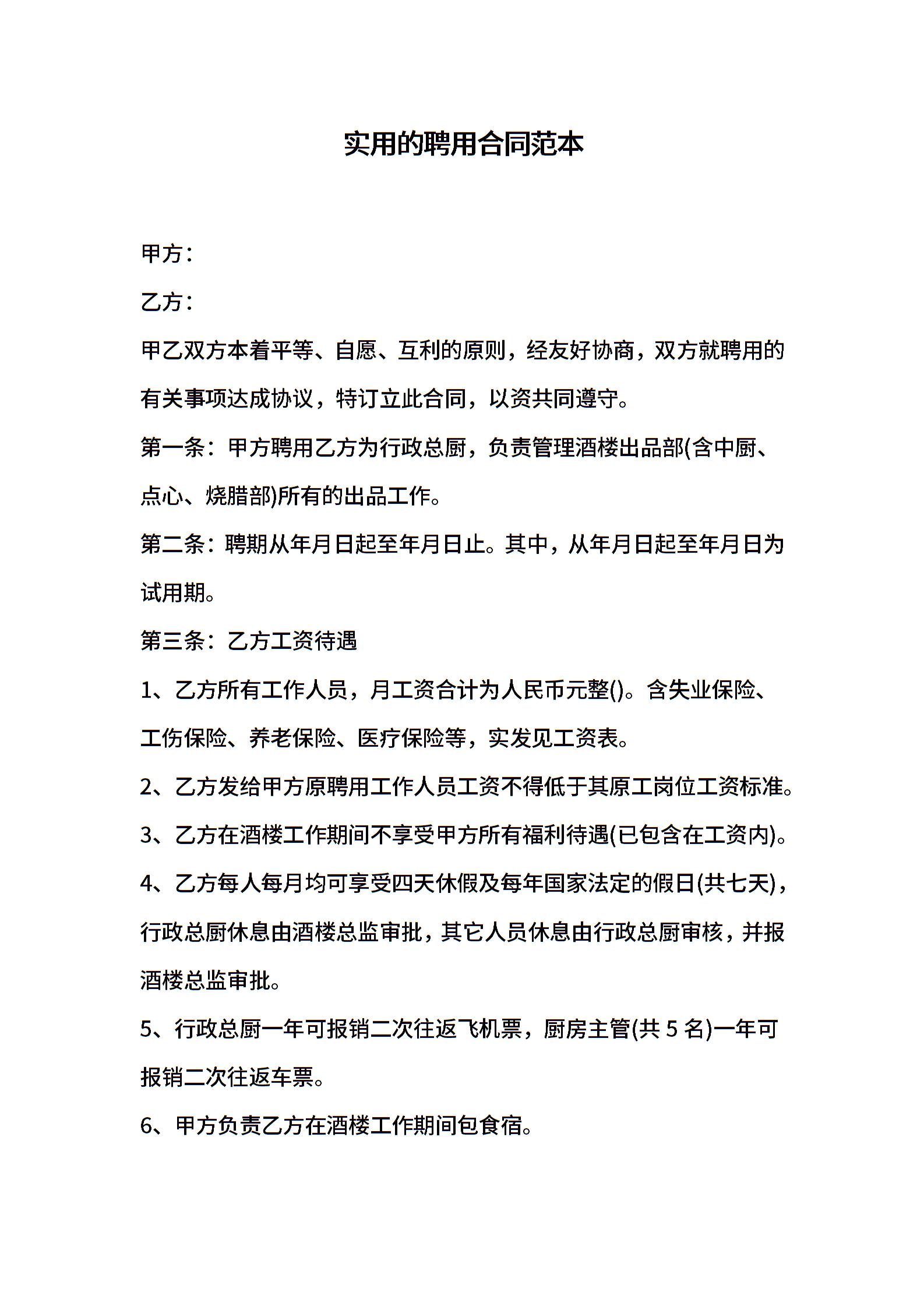 实用的聘用合同范本