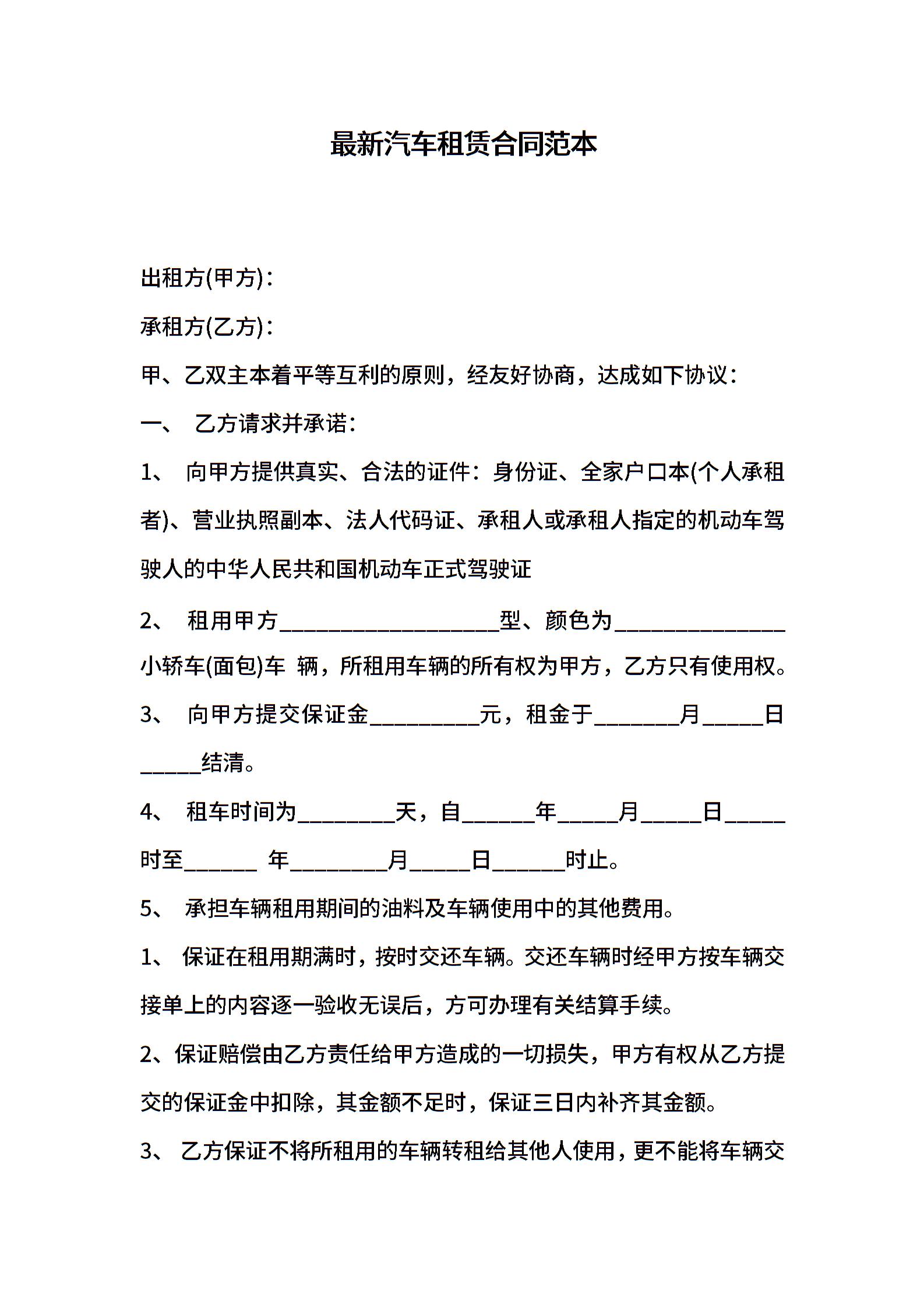 最新汽车租赁合同范本