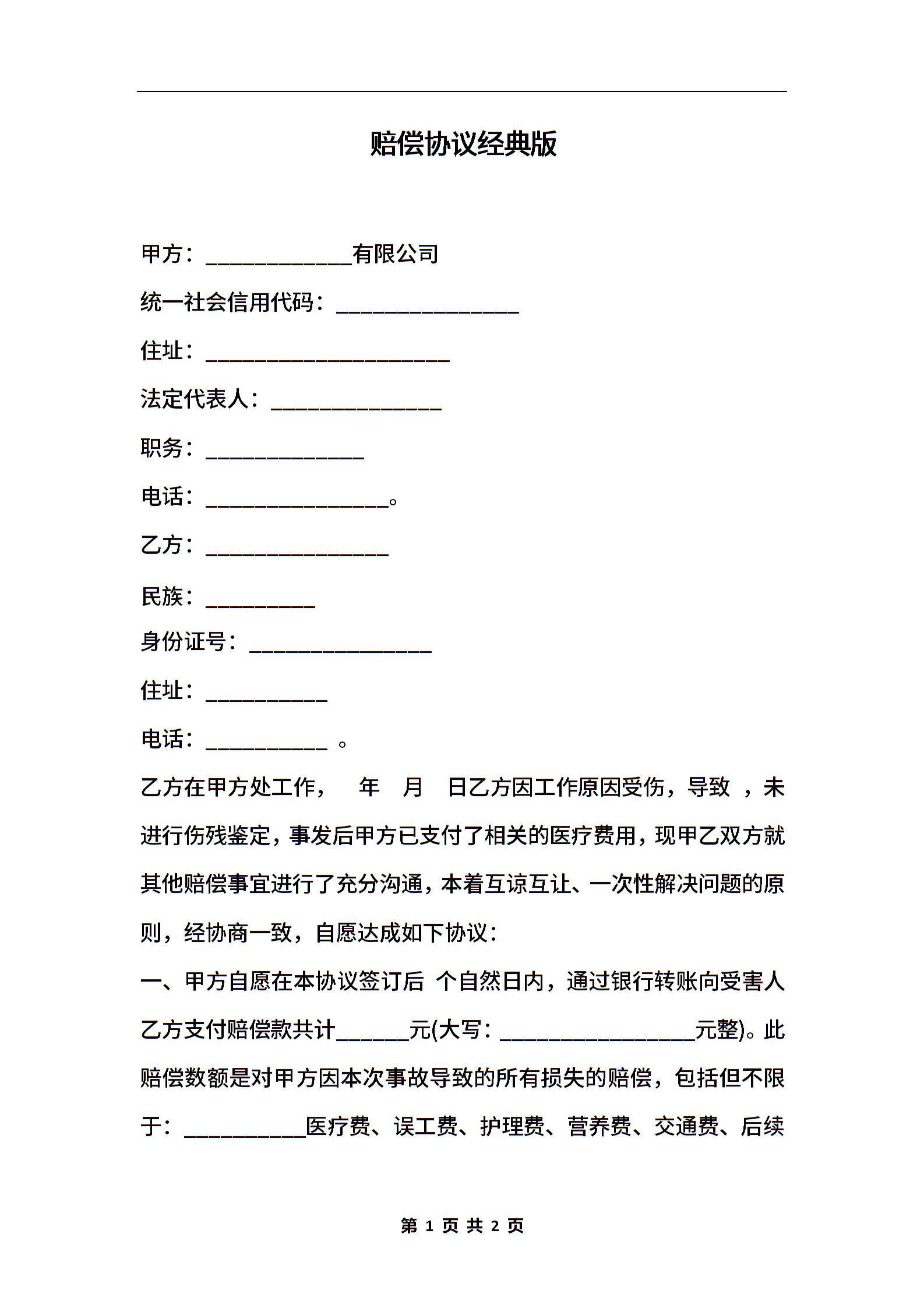 当前位置:量子办公 > 合同模板 > 赔偿协议 >