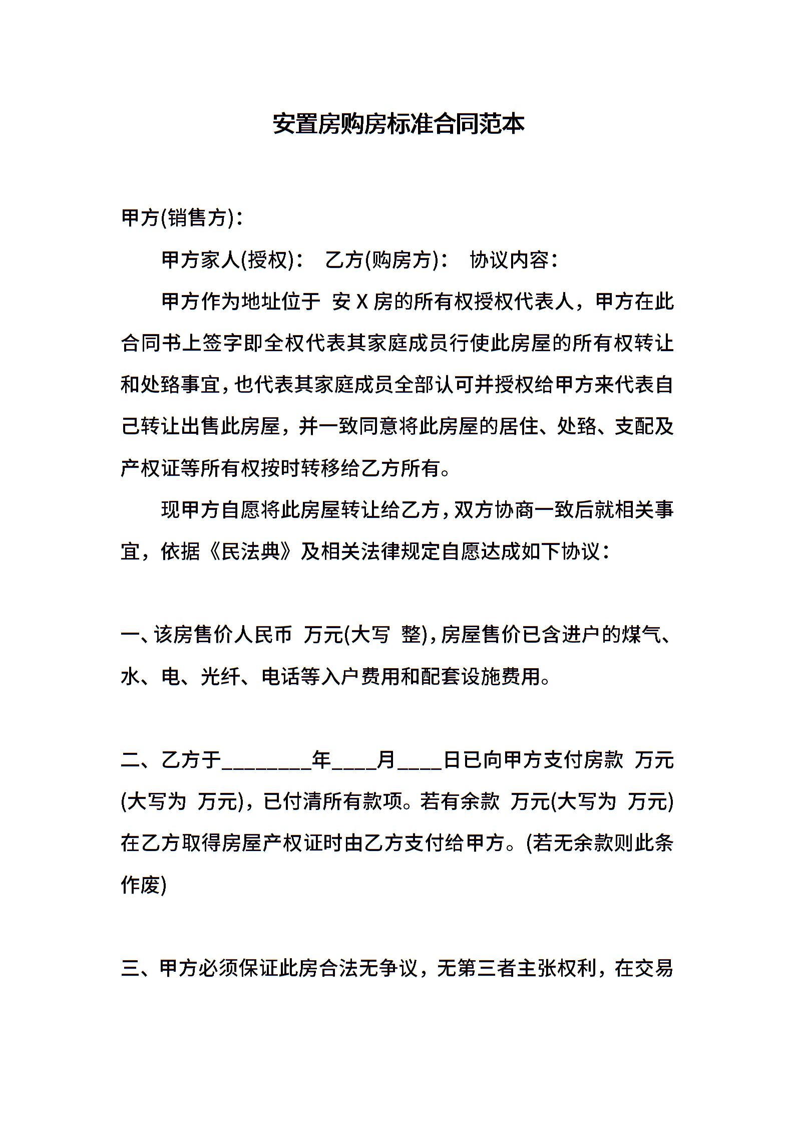 安置房购房标准合同范本