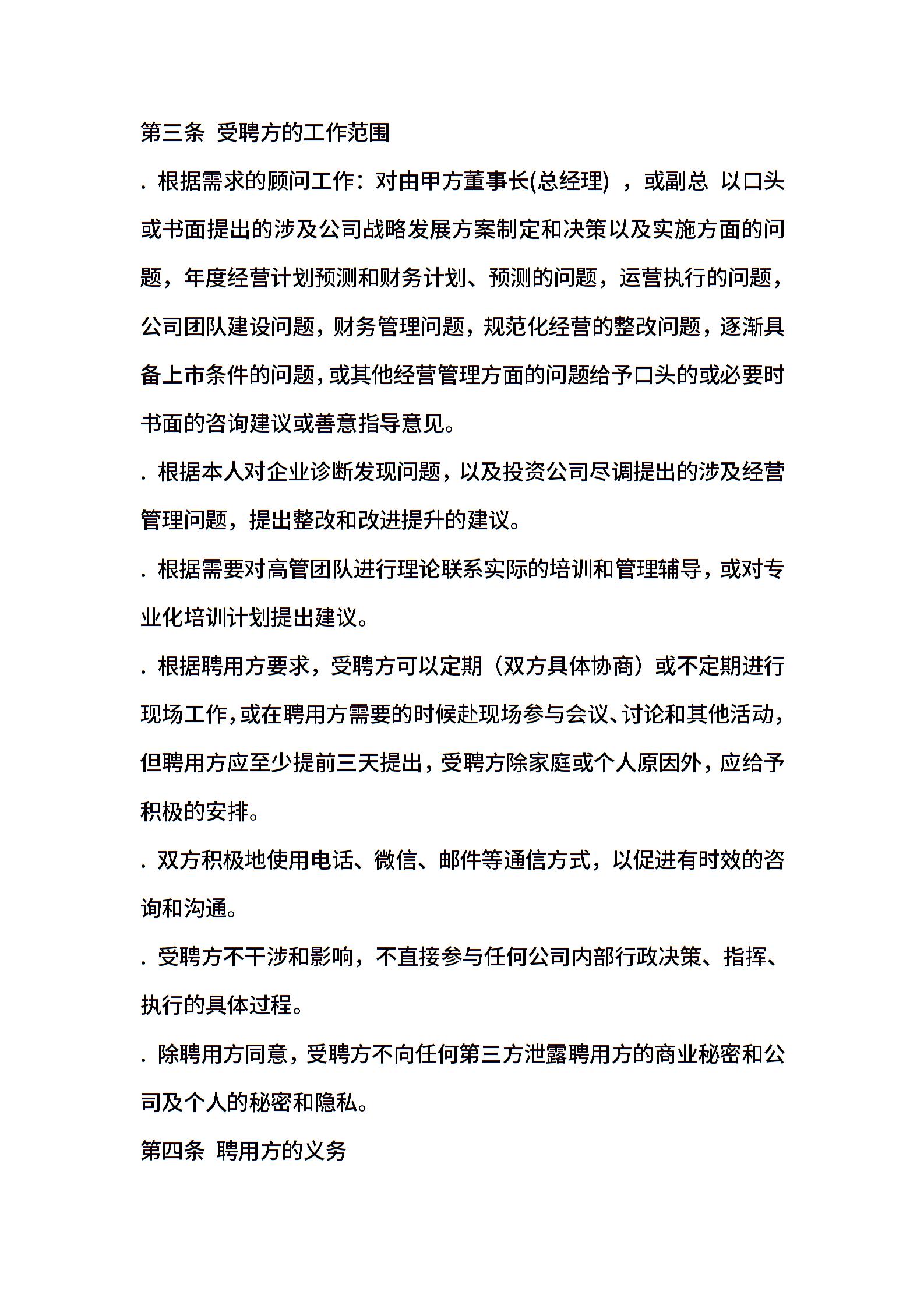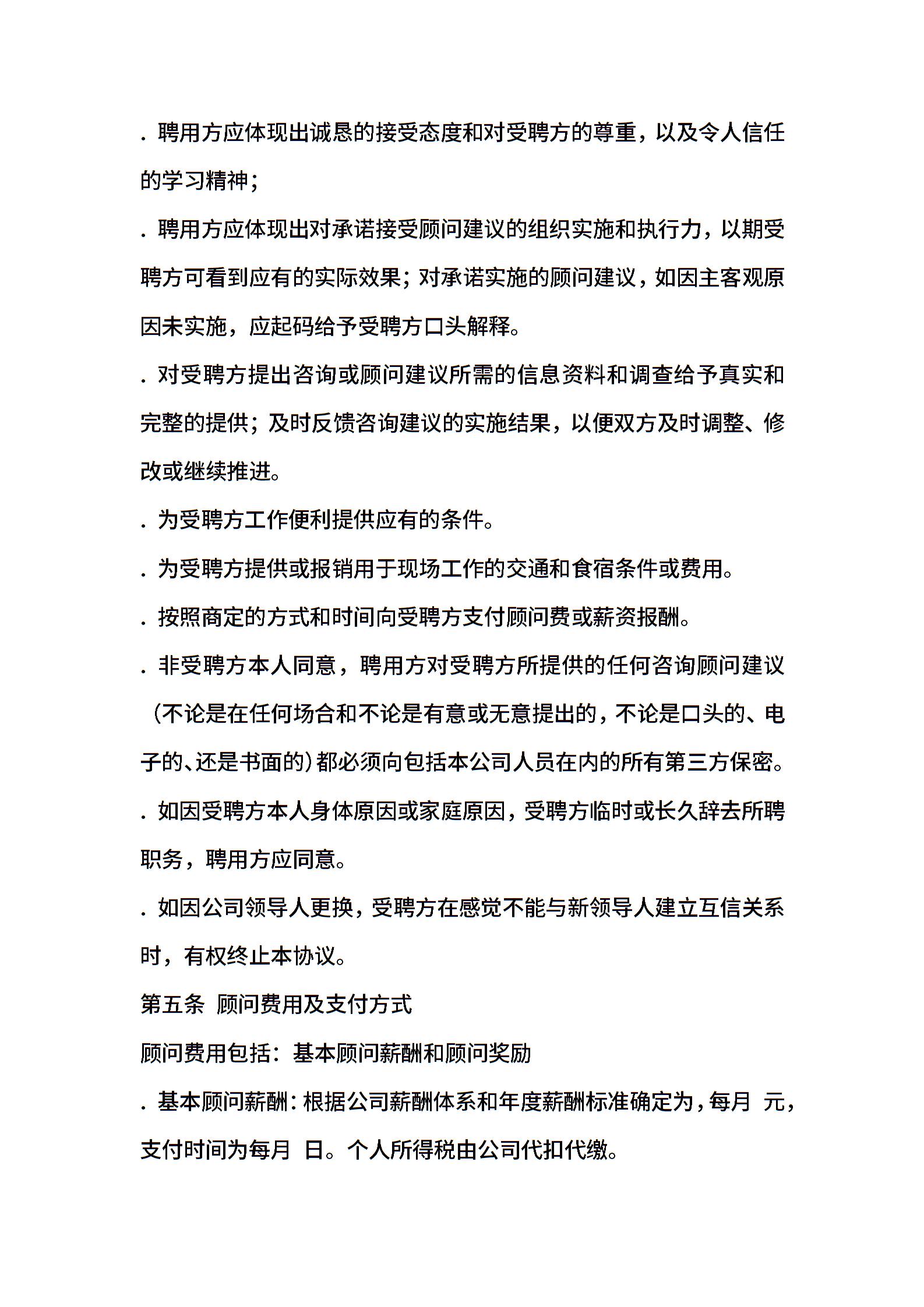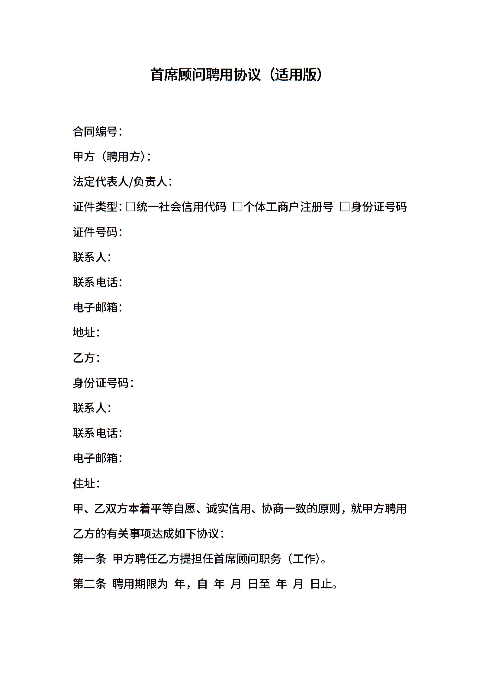 首席顾问聘用协议(适用版)