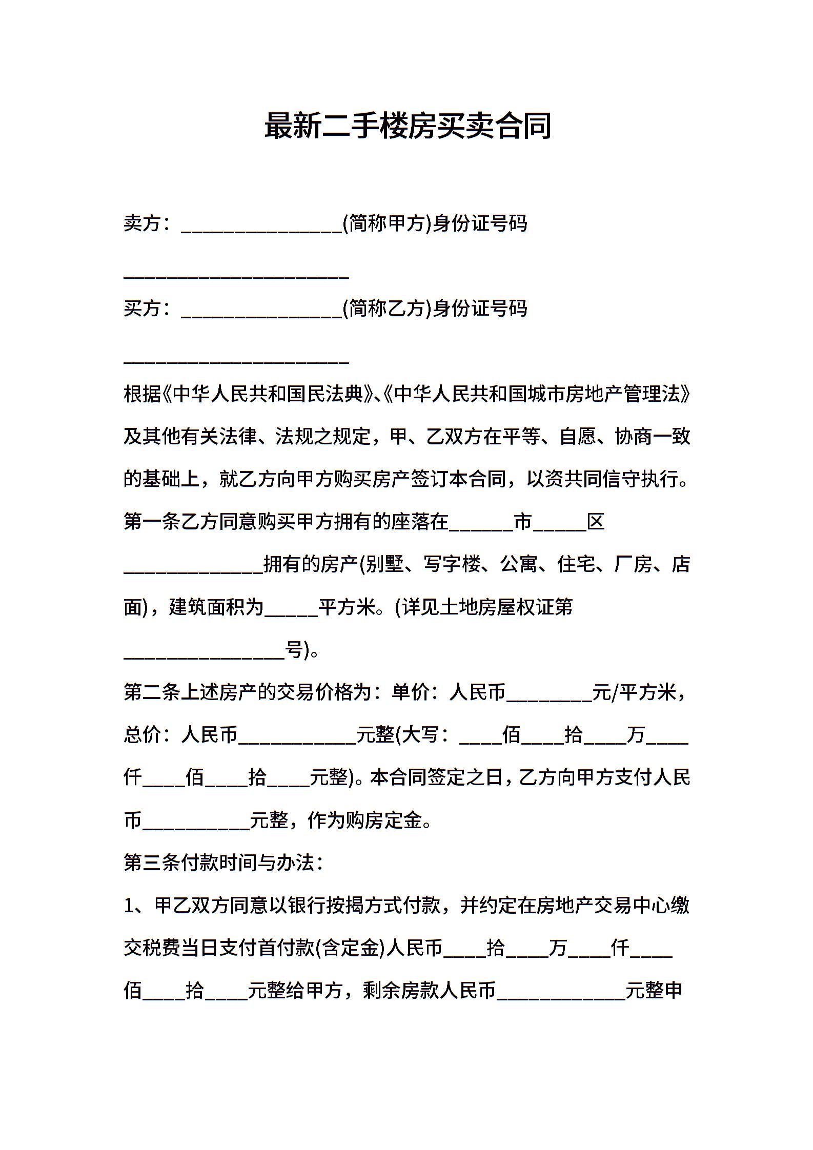最新二手楼房买卖合同