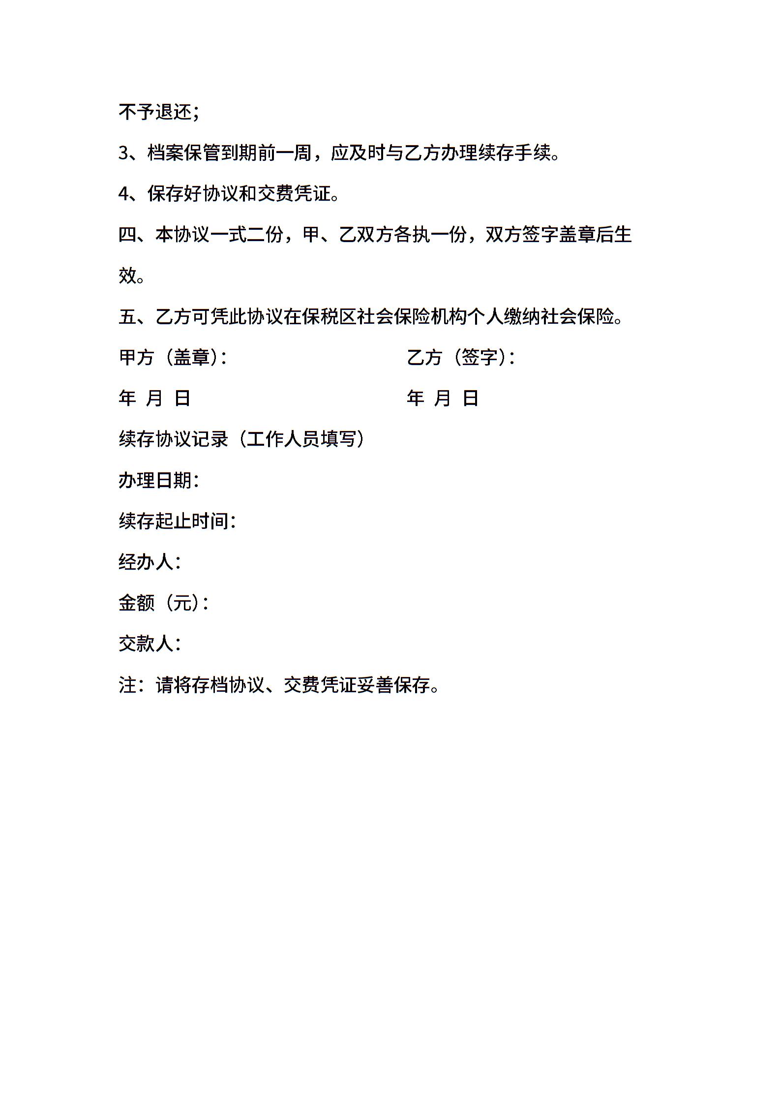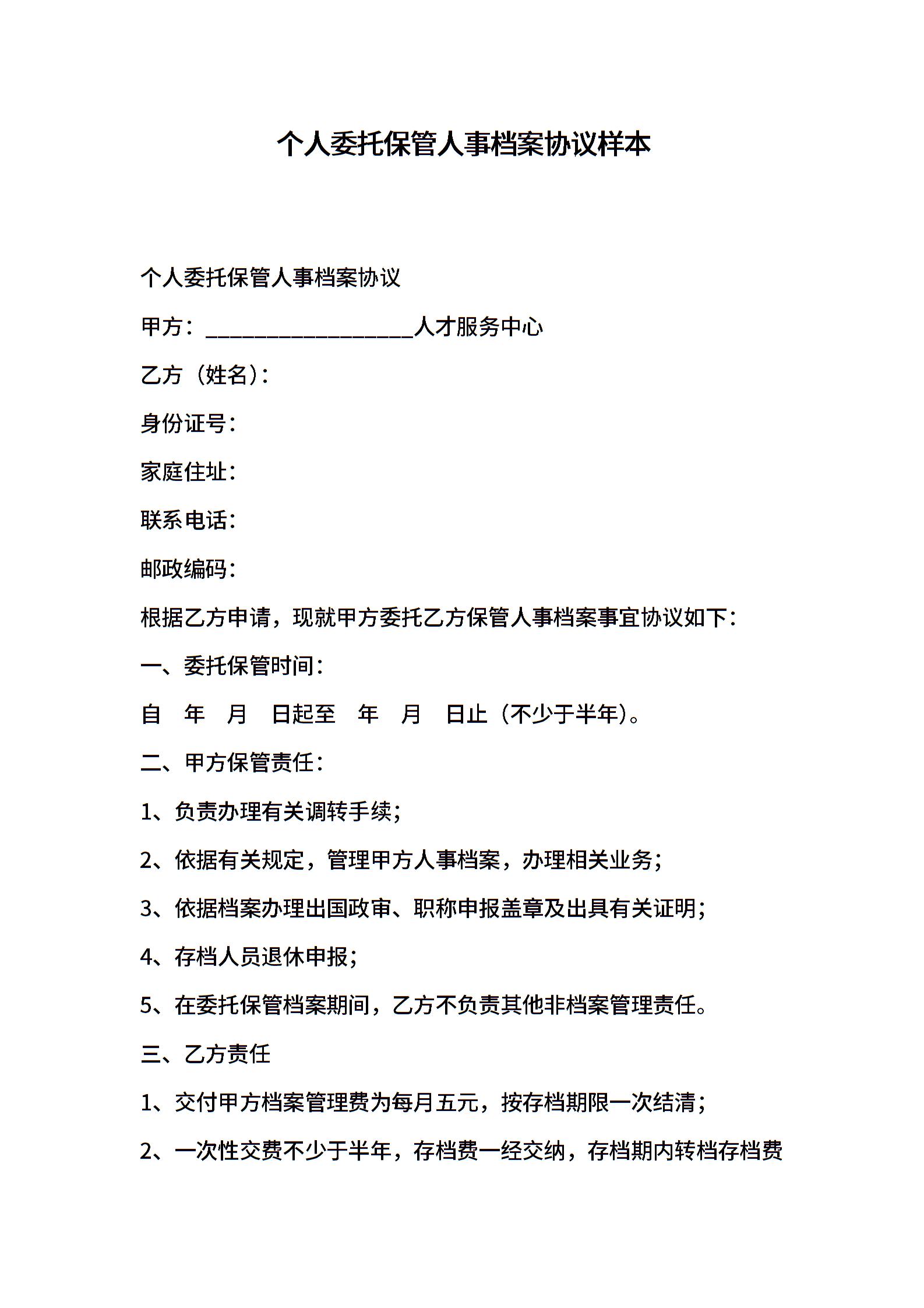 个人委托保管人事档案协议样本