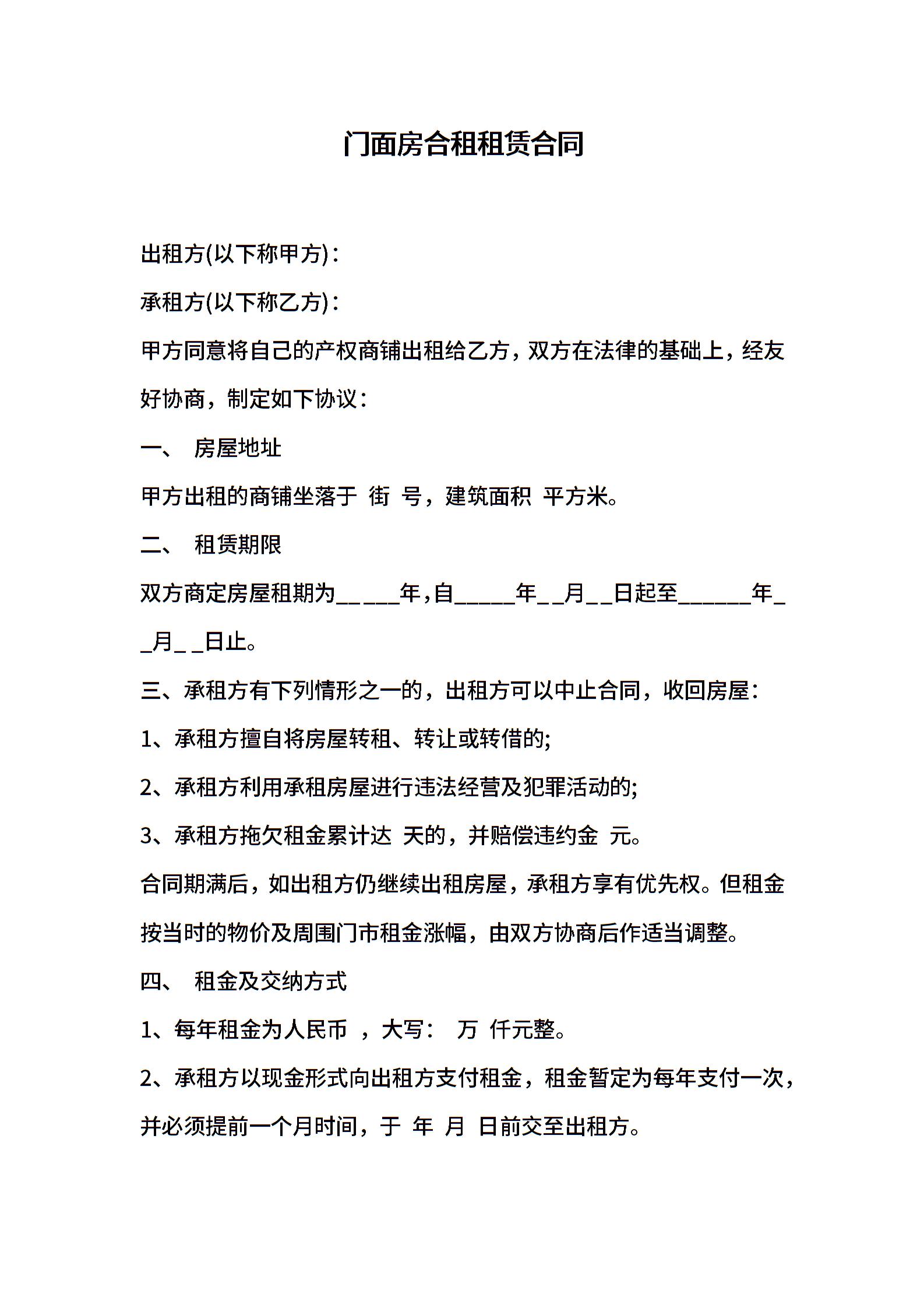 门面房合租租赁合同