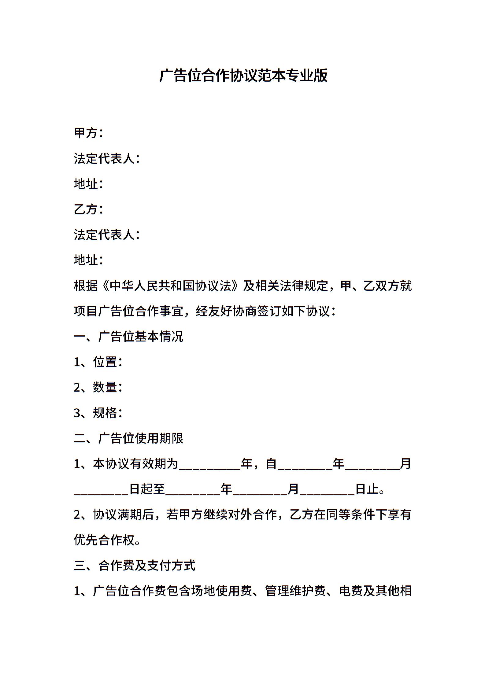 当前位置:量子办公 > 合同模板 > 合作合同 >