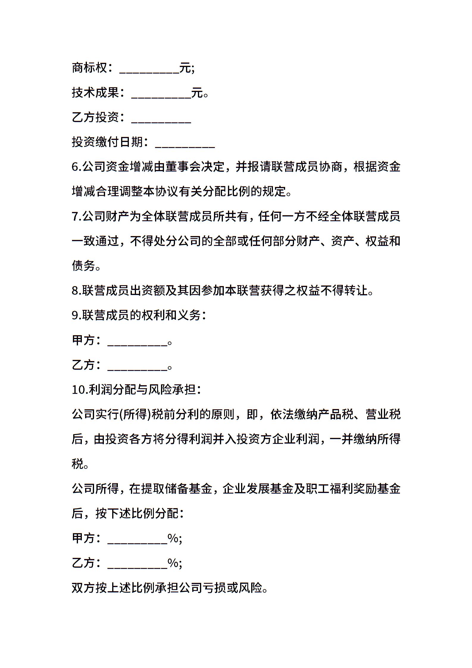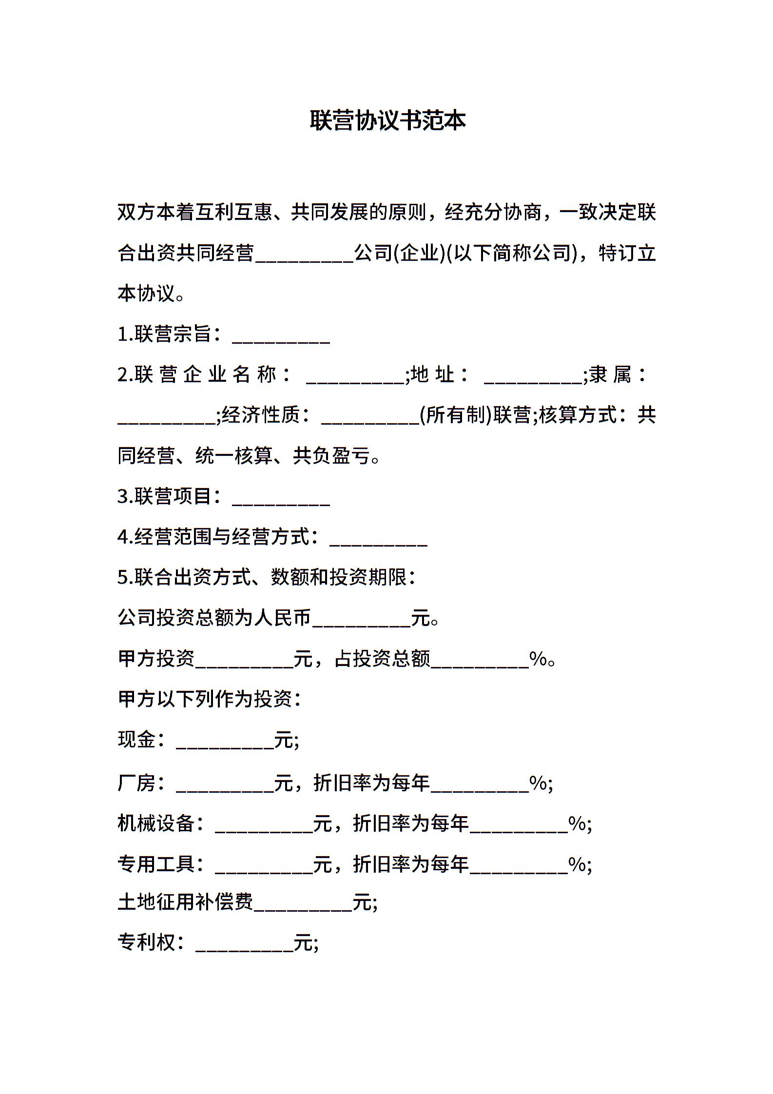 联营协议书范本