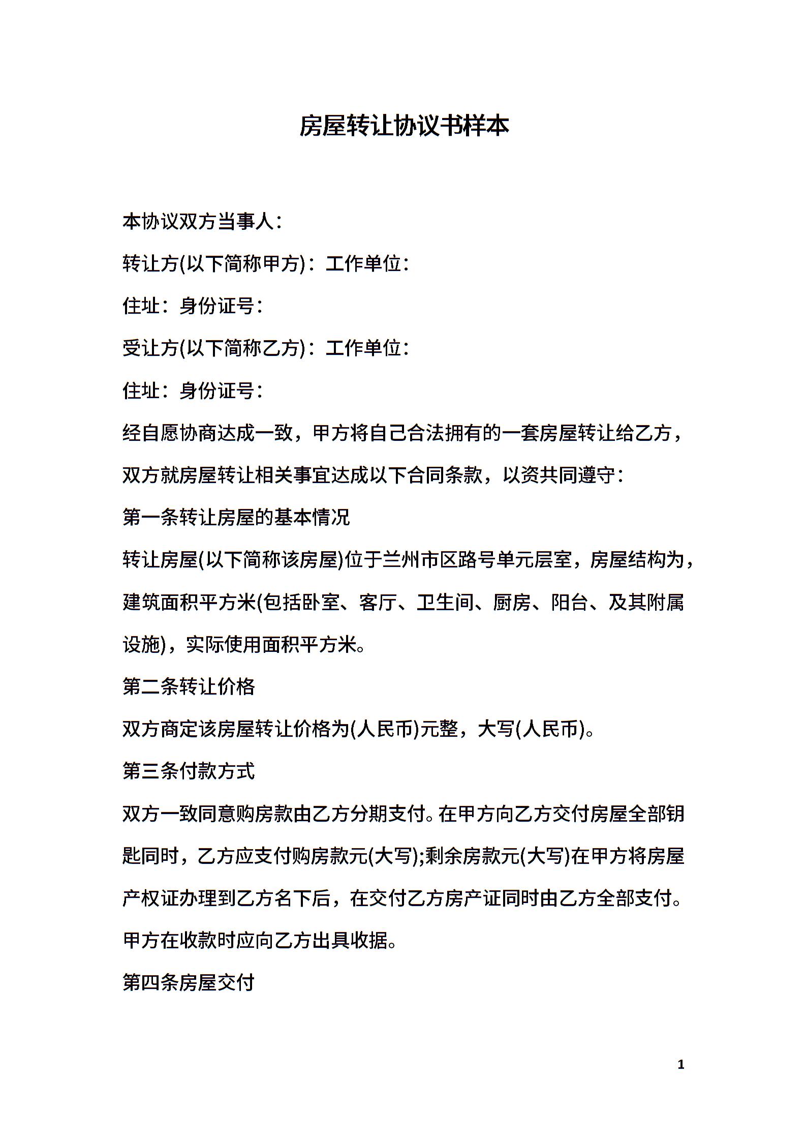 房屋转让协议书样本
