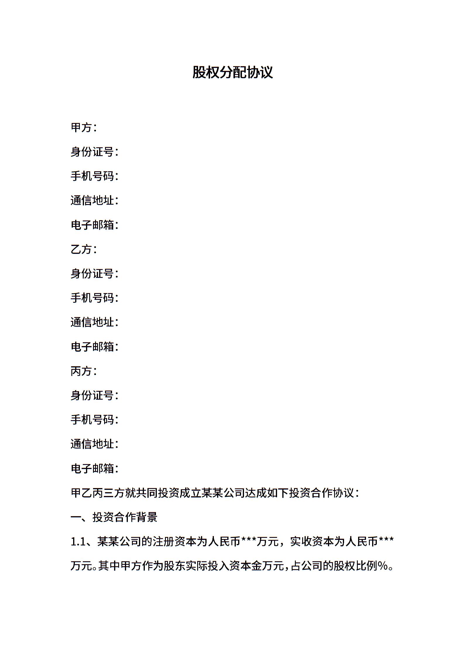 股权分配协议 (1)