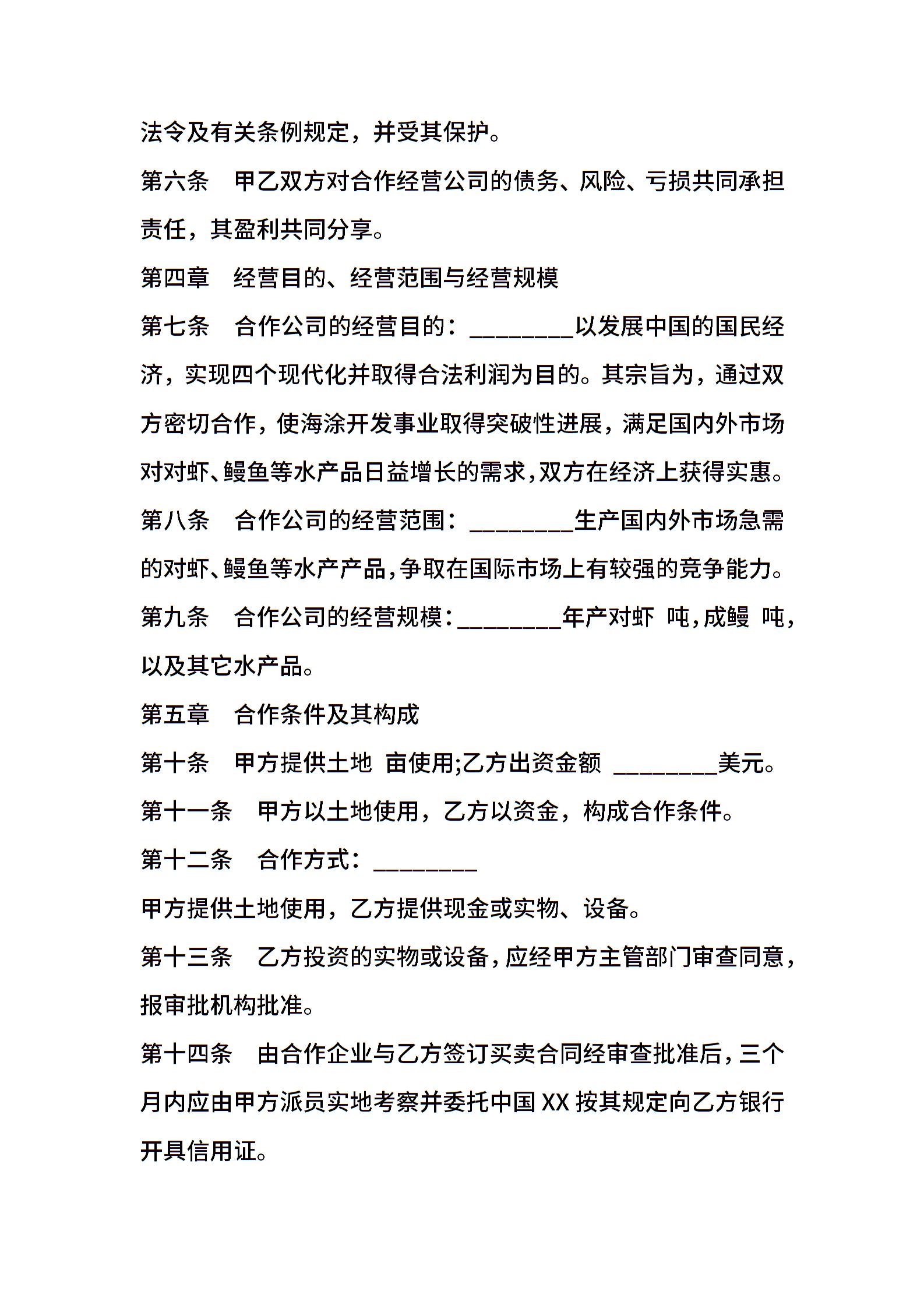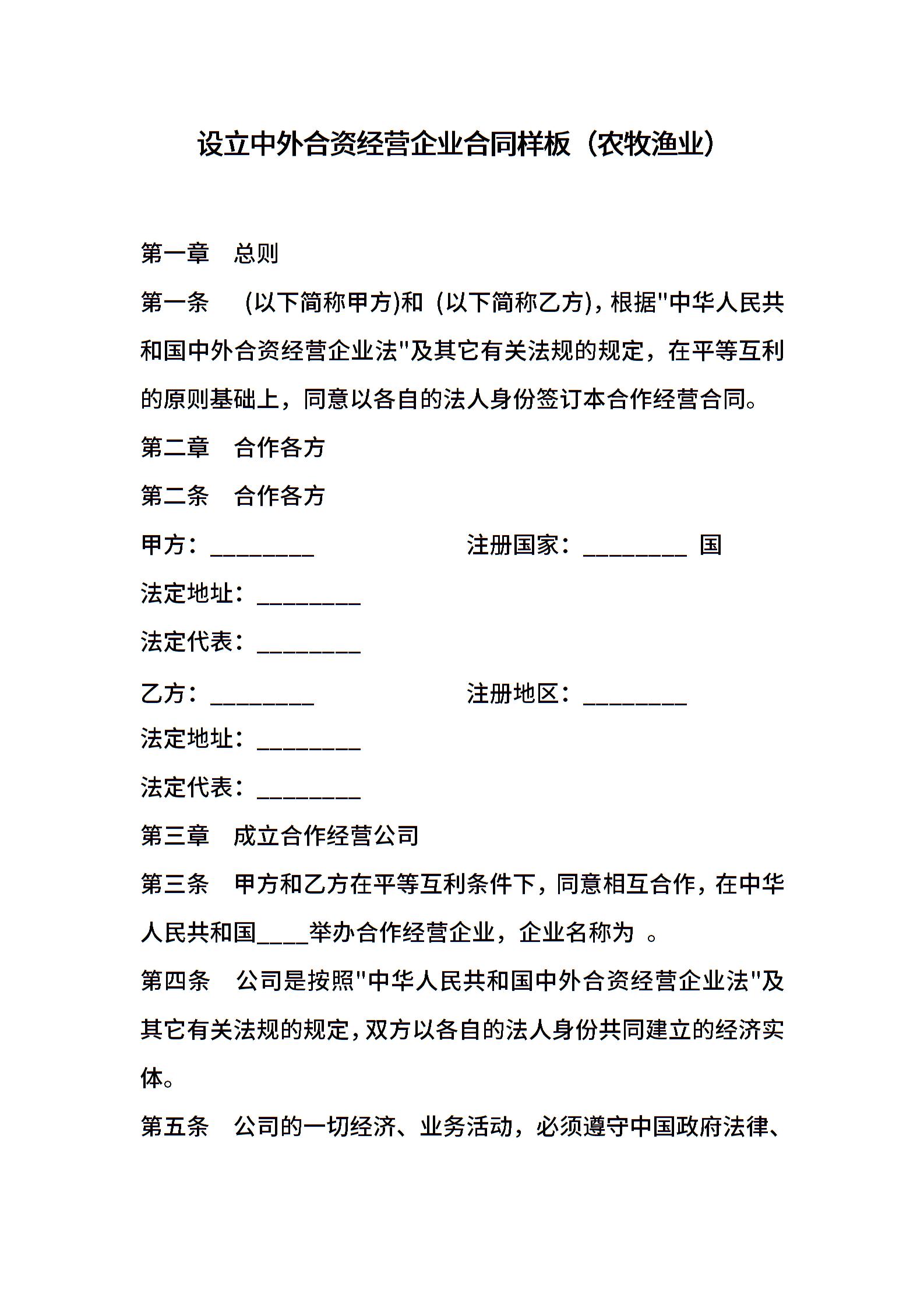 设立中外合资经营企业合同样板(农牧渔业)