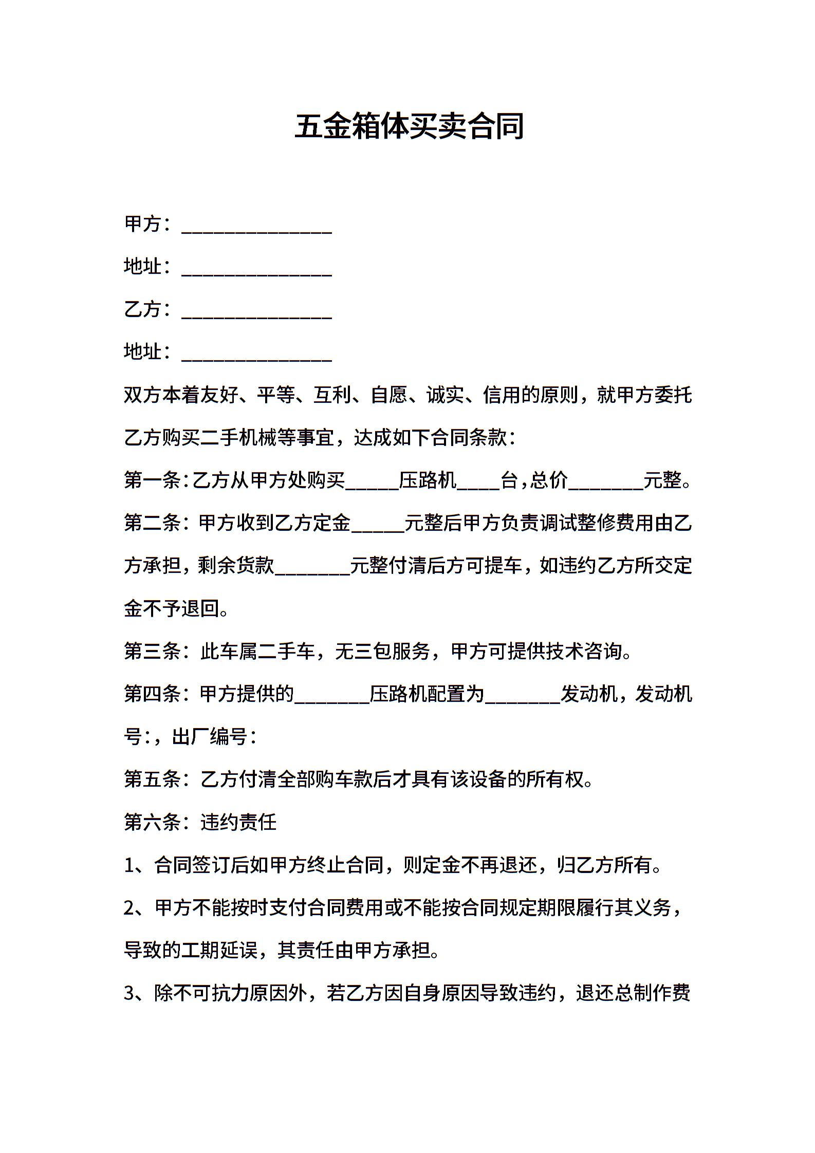 五金箱体买卖合同