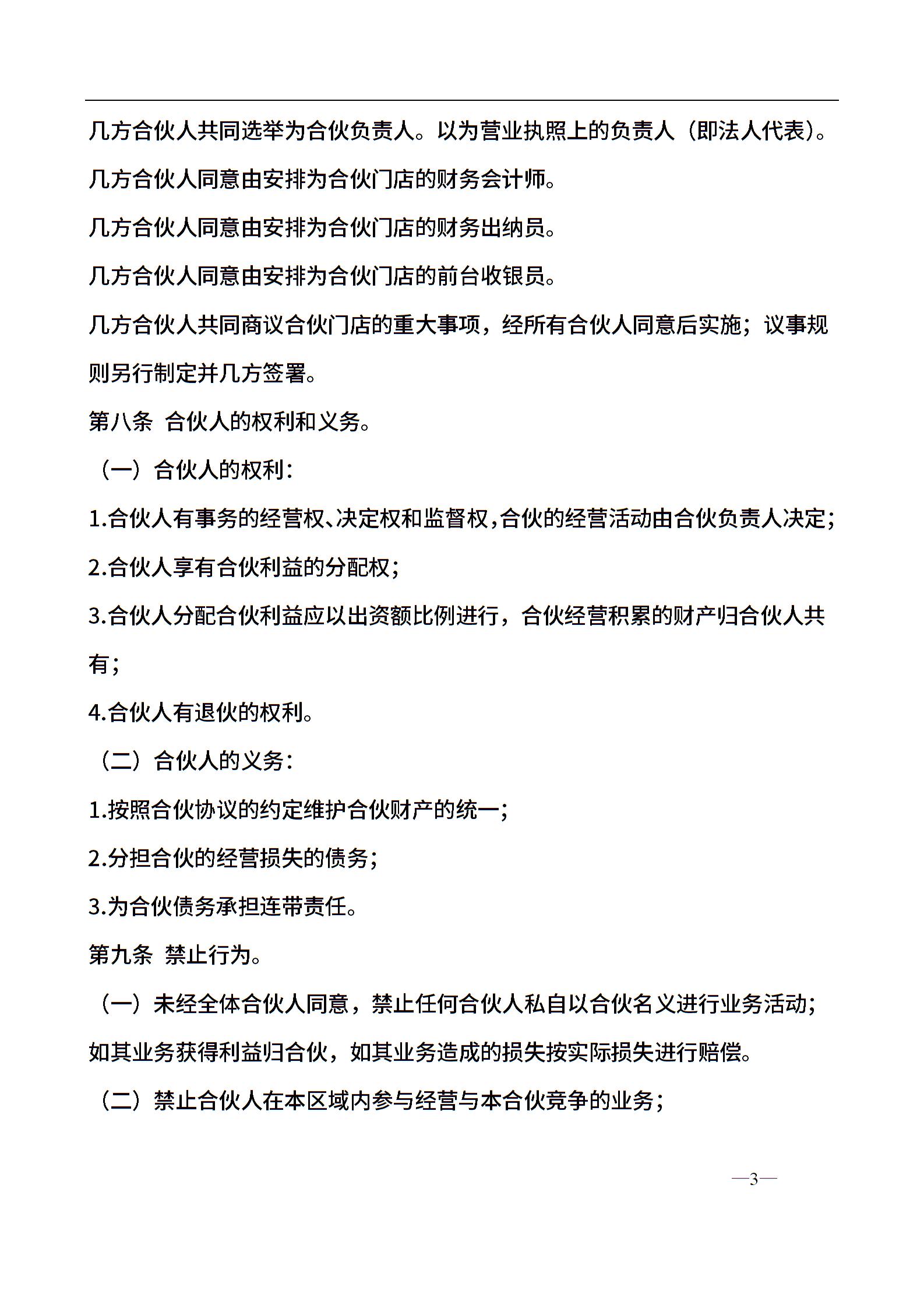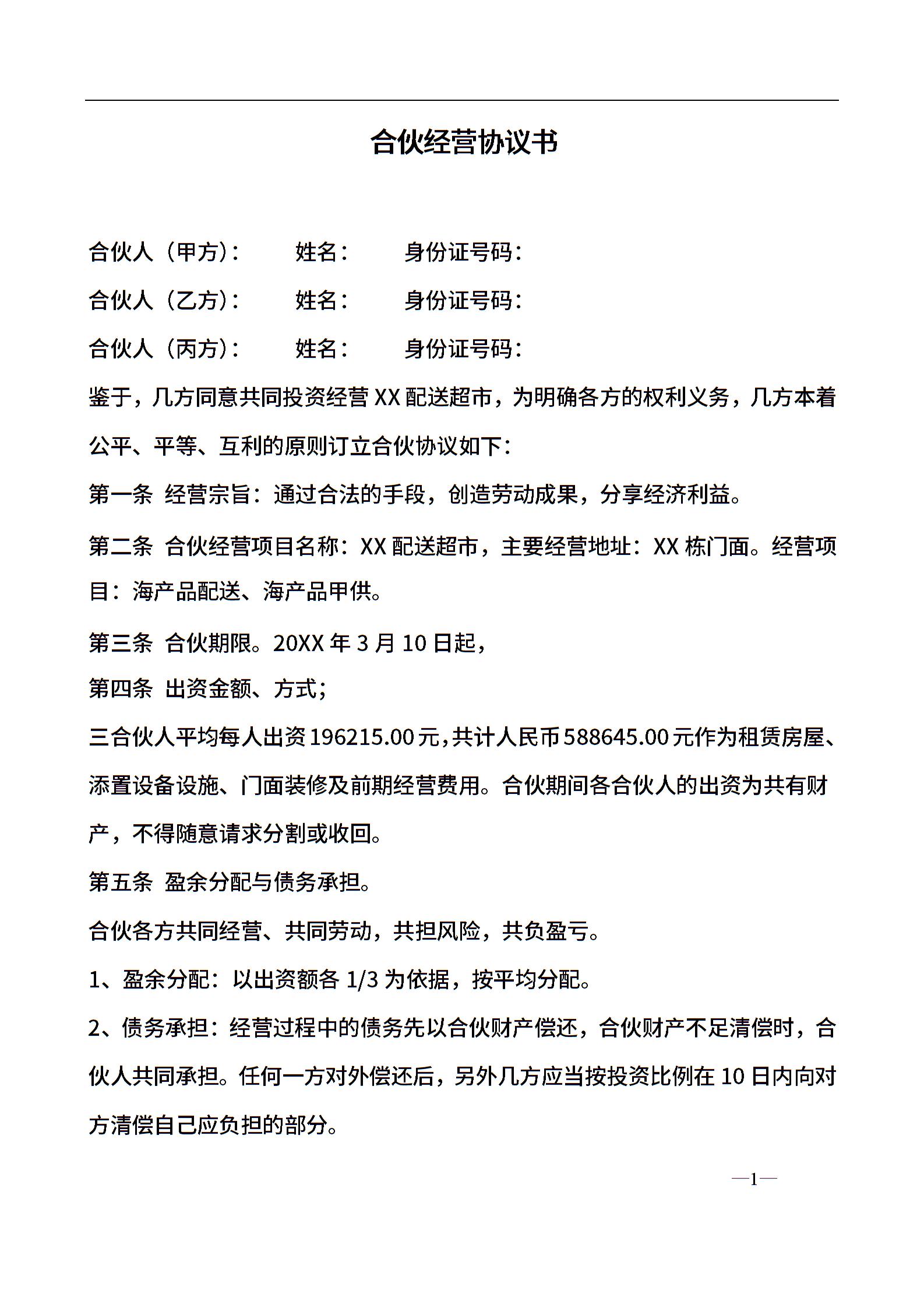 合伙经营协议书三人(4页)