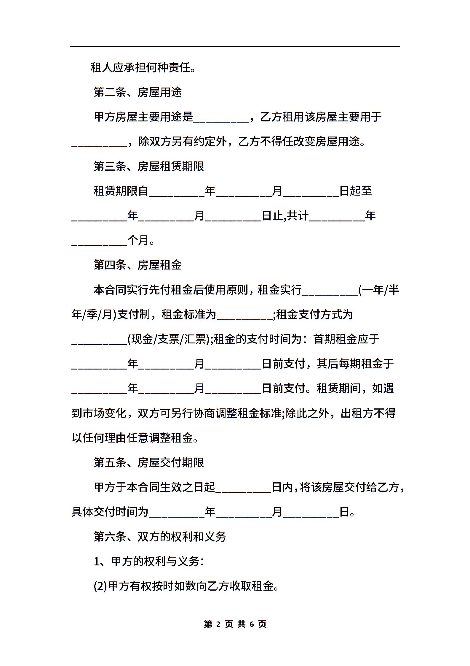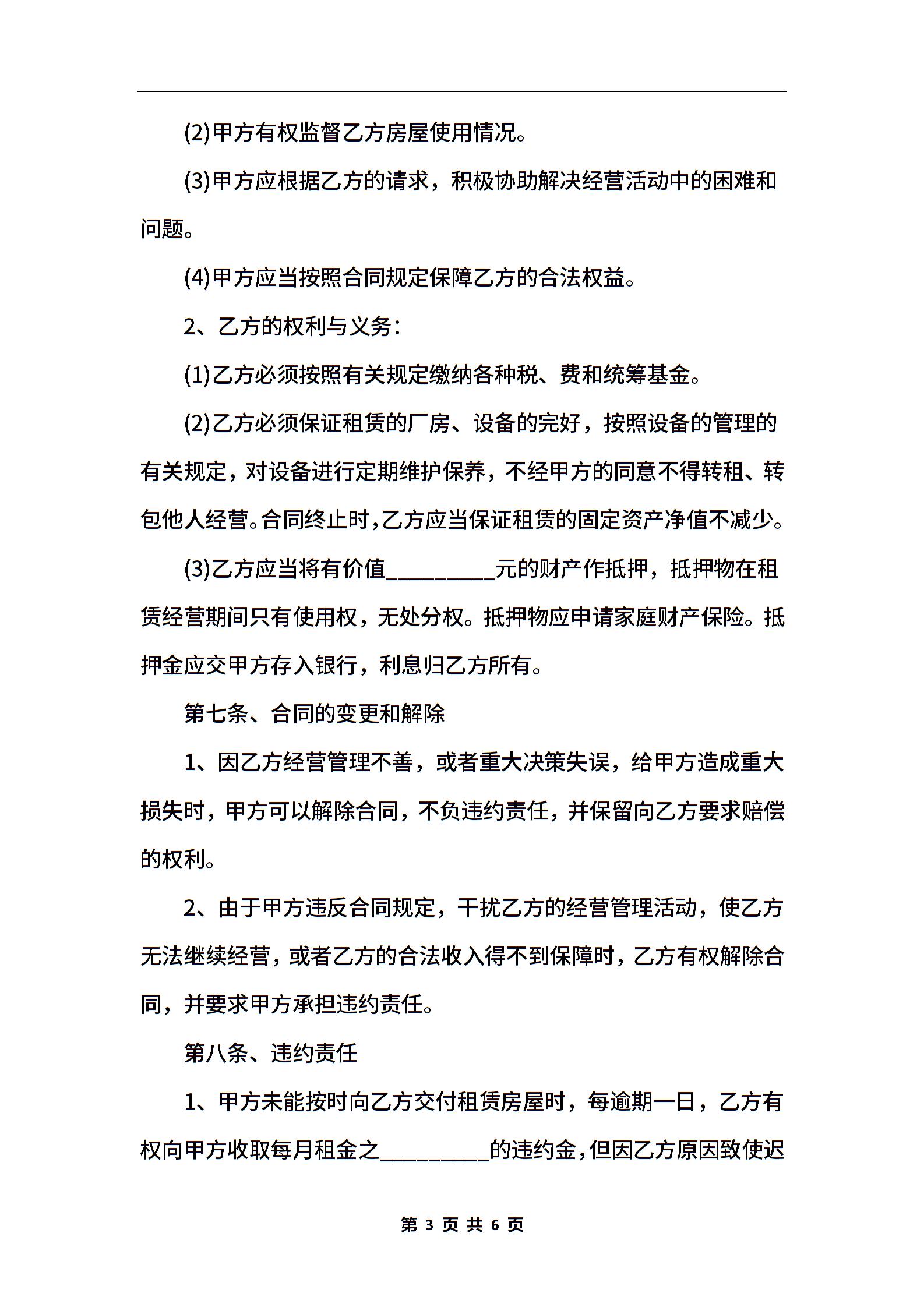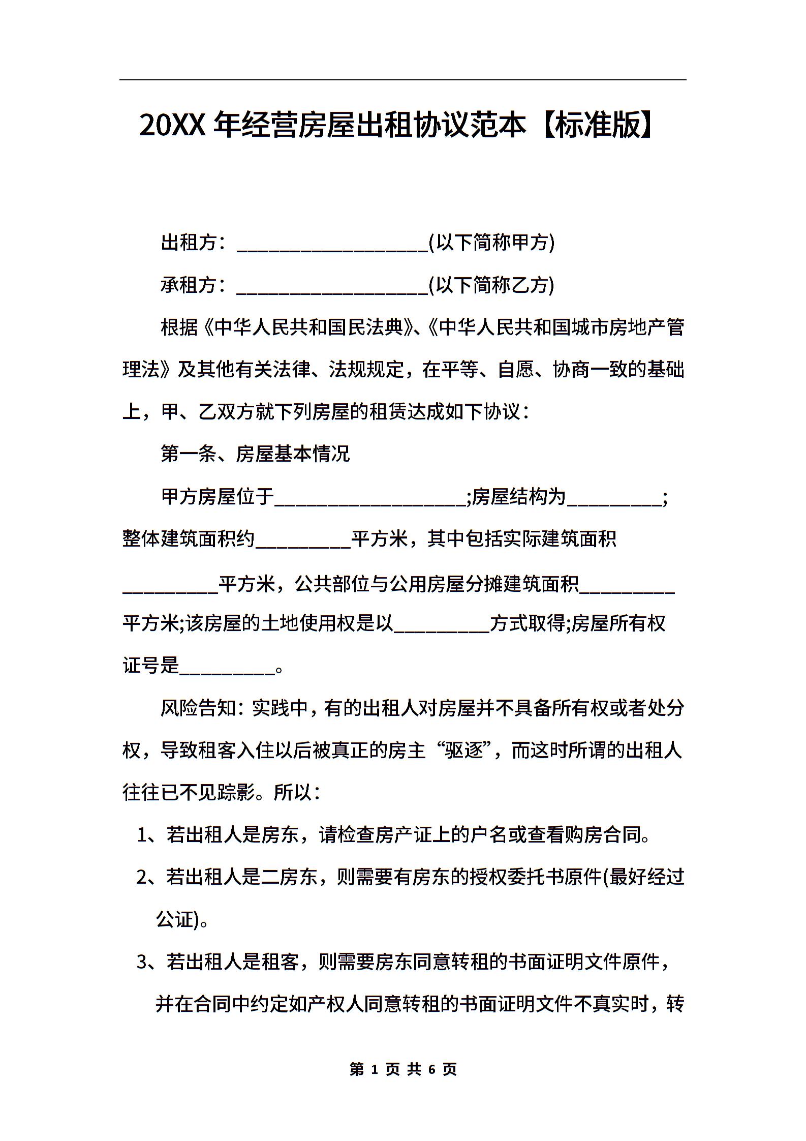 2021年经营房屋出租协议范本【标准版】