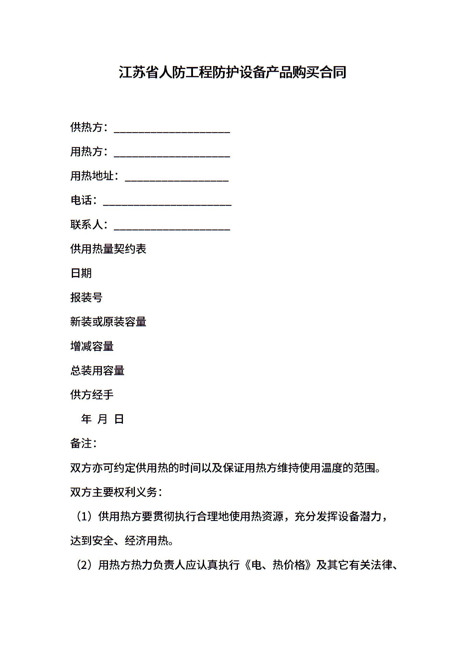 江苏省人防工程防护设备产品购买合同