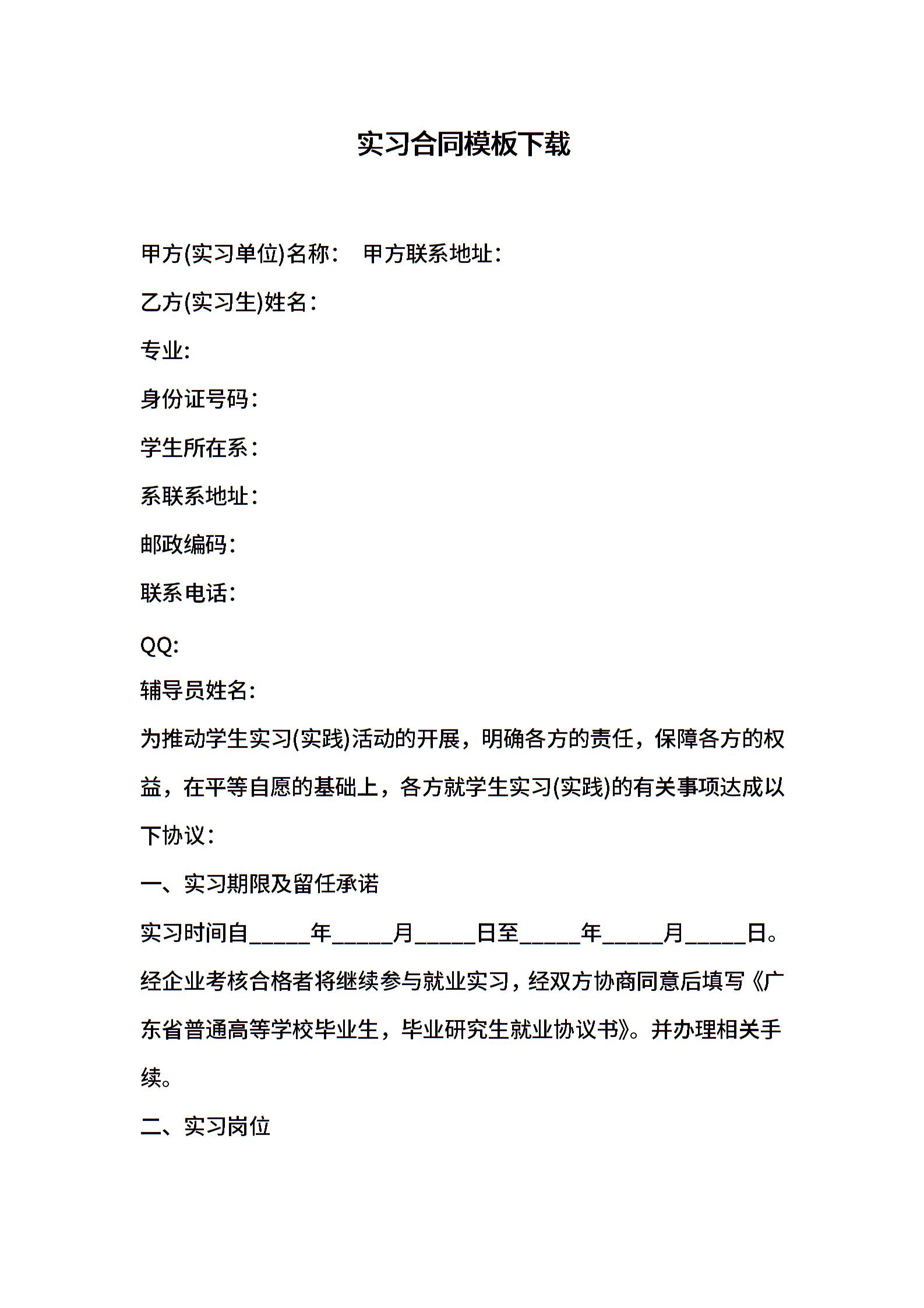 实习合同模板下载