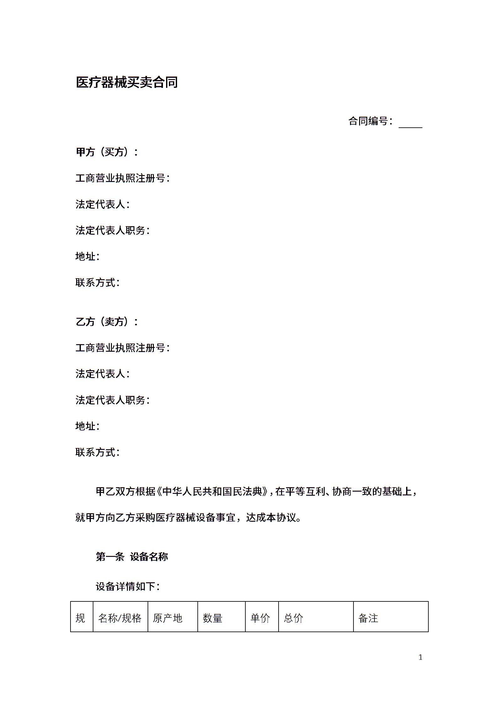 医疗器械买卖合同-