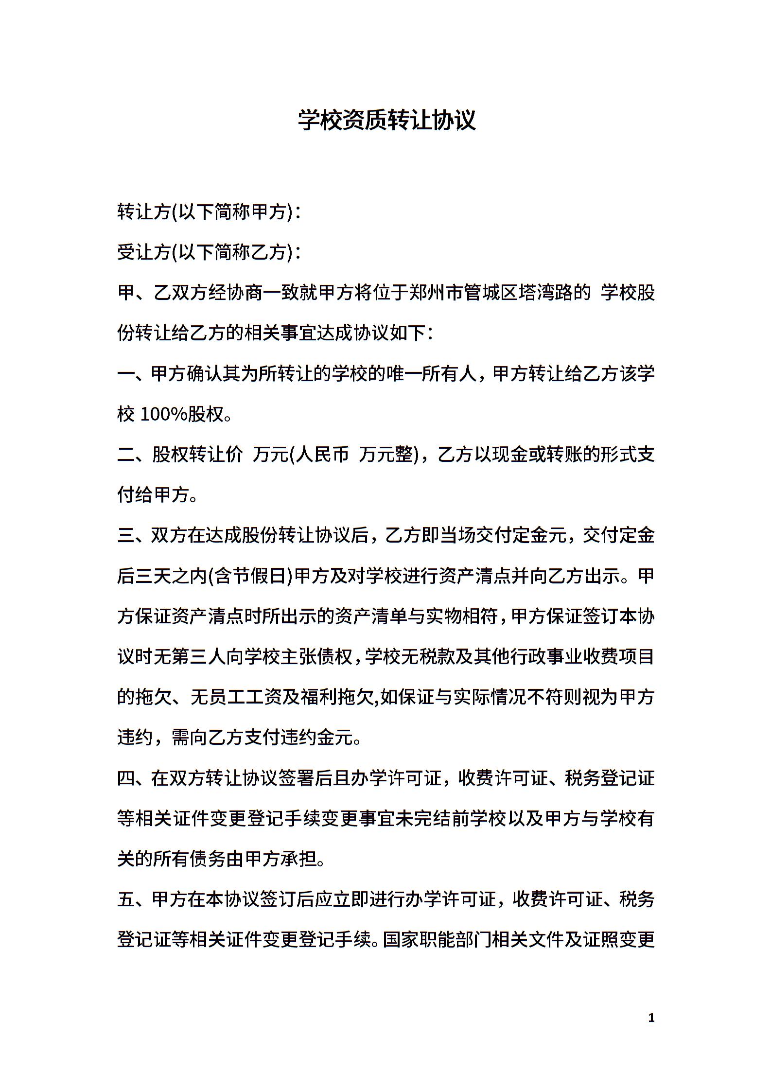 当前位置:量子办公 > 合同模板 > 转让合同 >