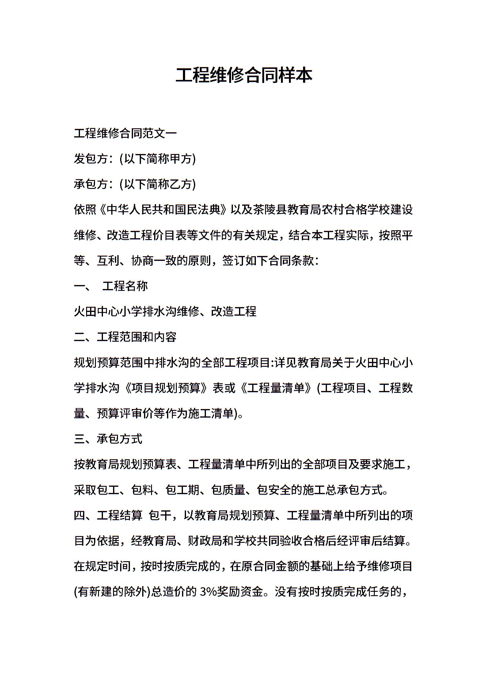 工程维修合同样本
