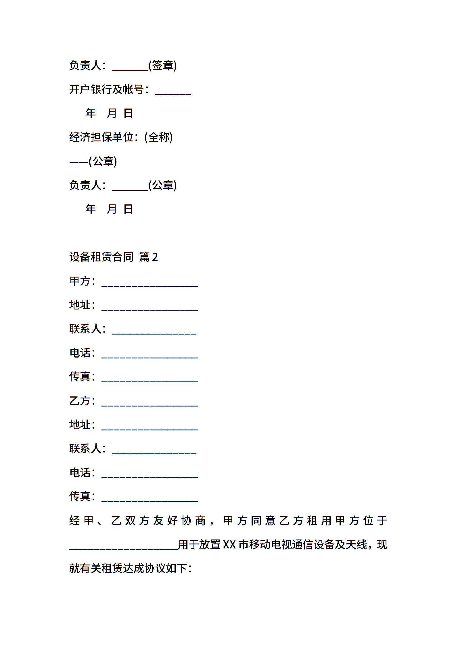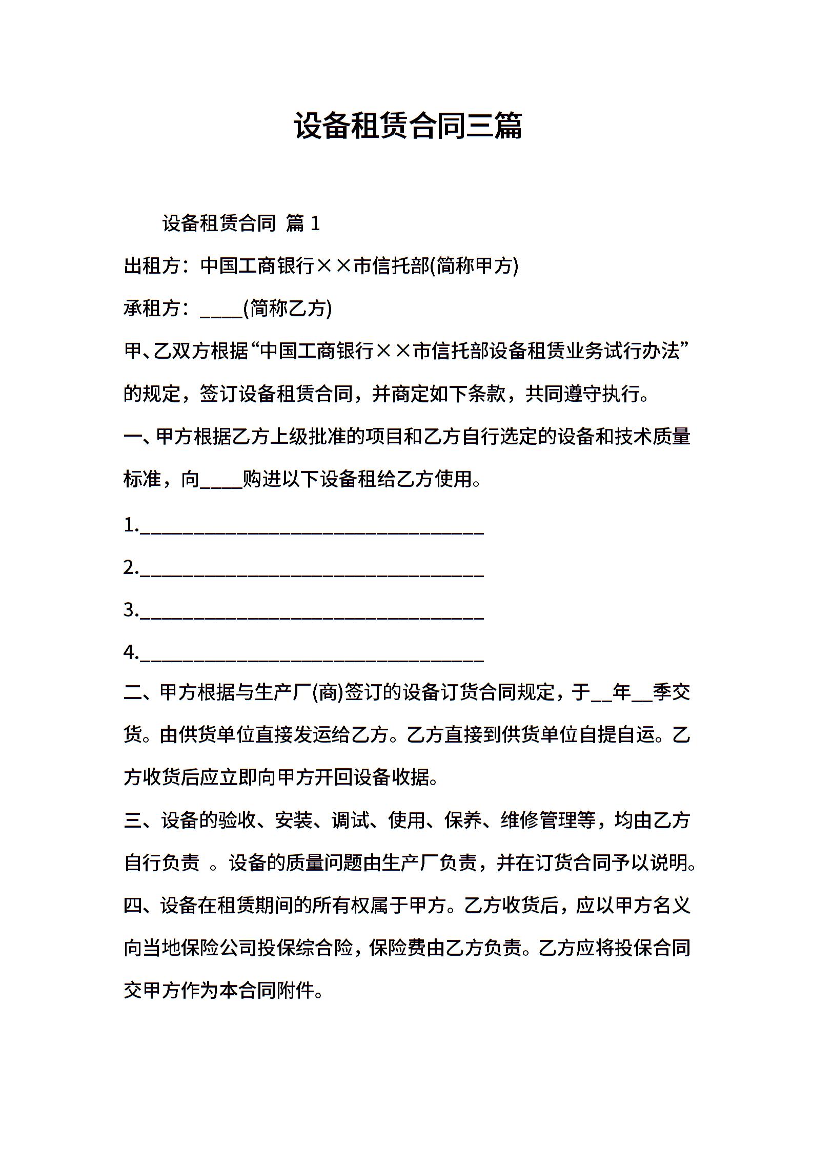 设备租赁合同三篇