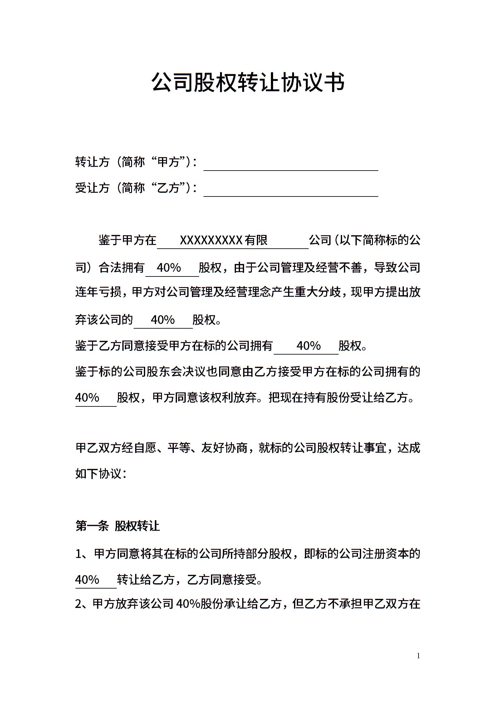 公司股权转让协议书