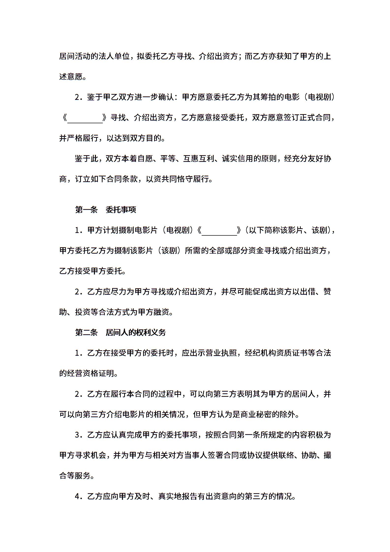 影视剧摄制居间合同 (2)