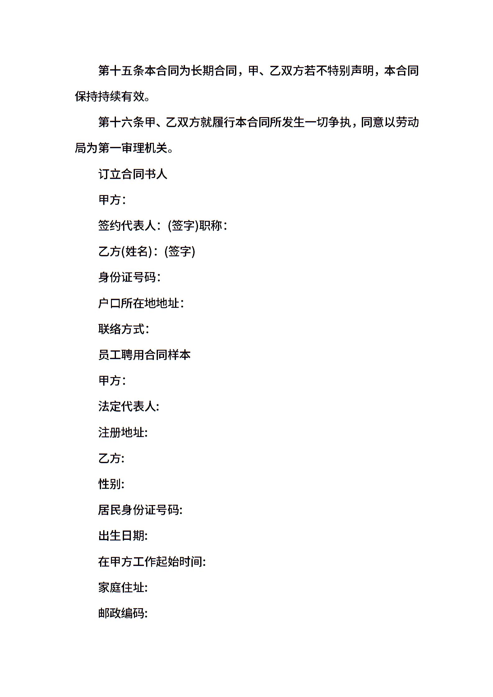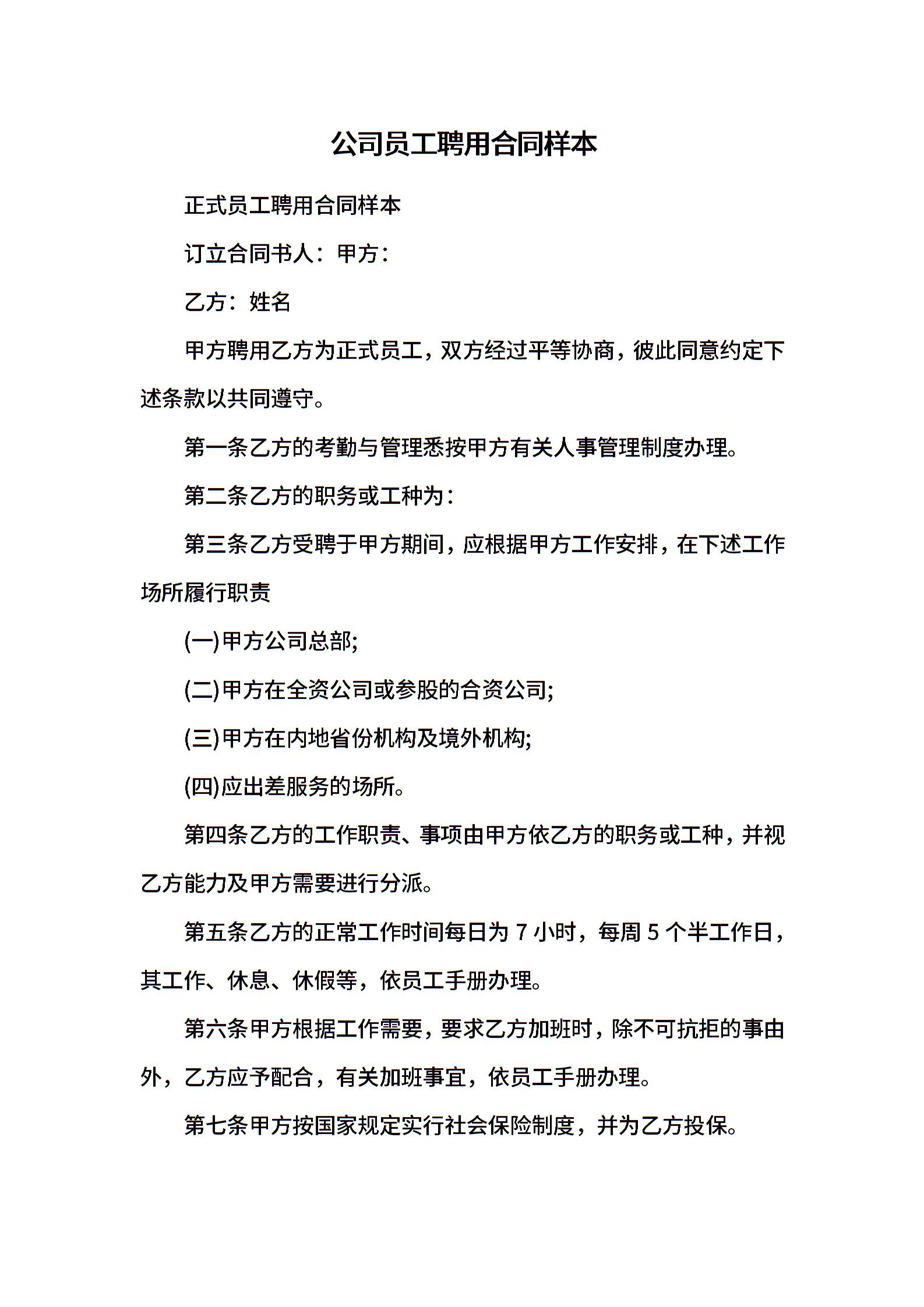 公司员工聘用合同样本