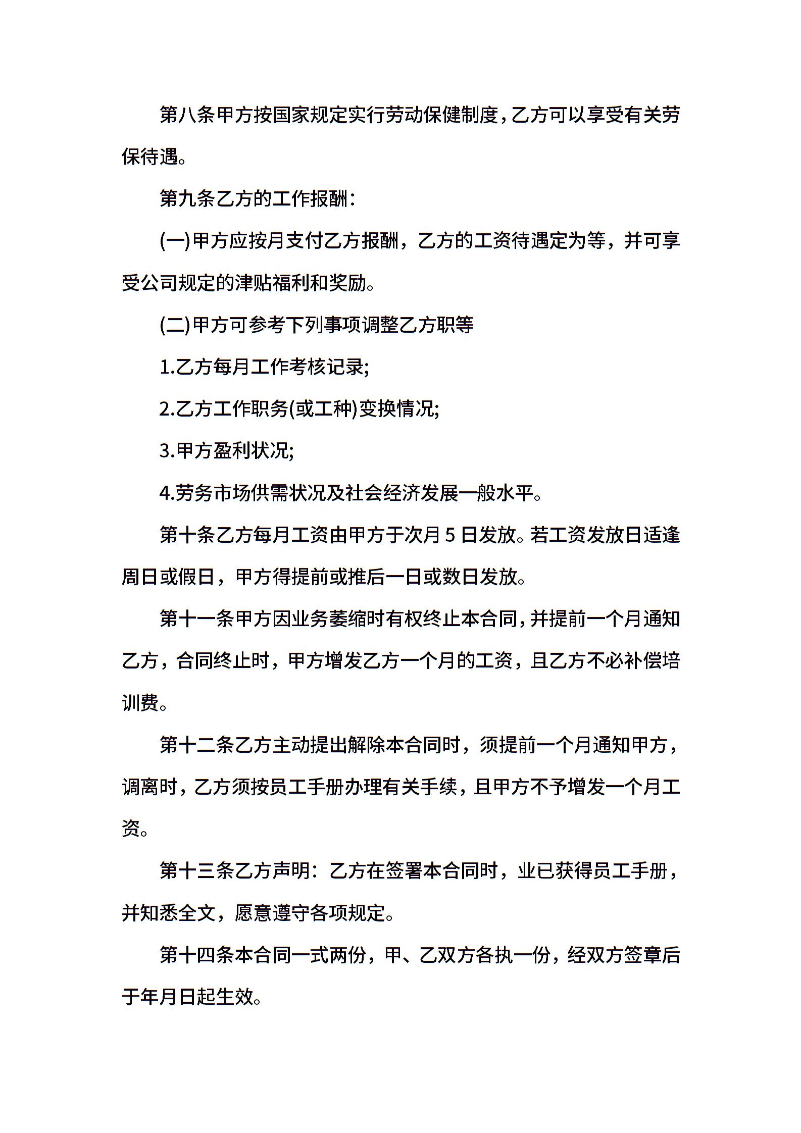 • 分类 聘用合同