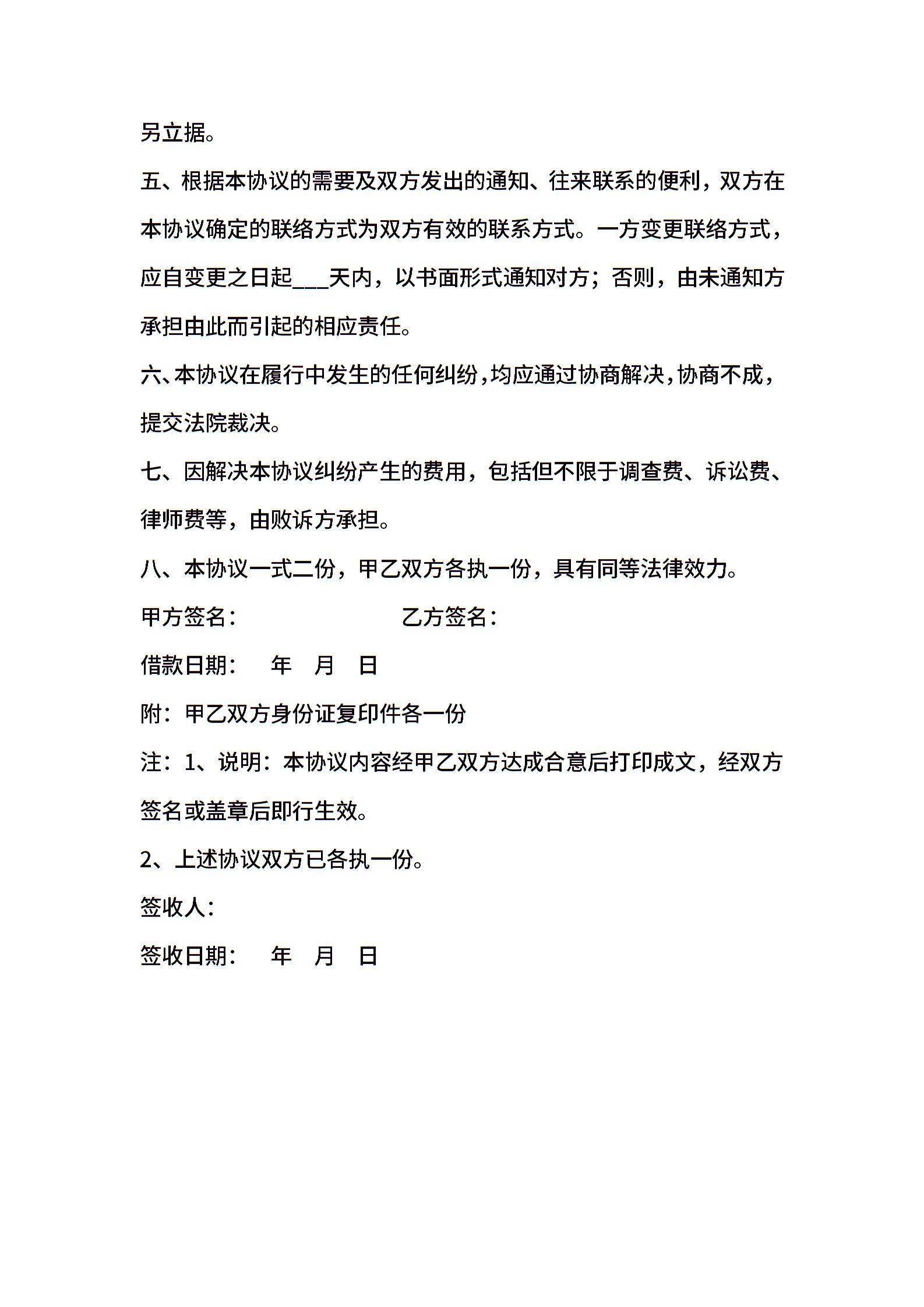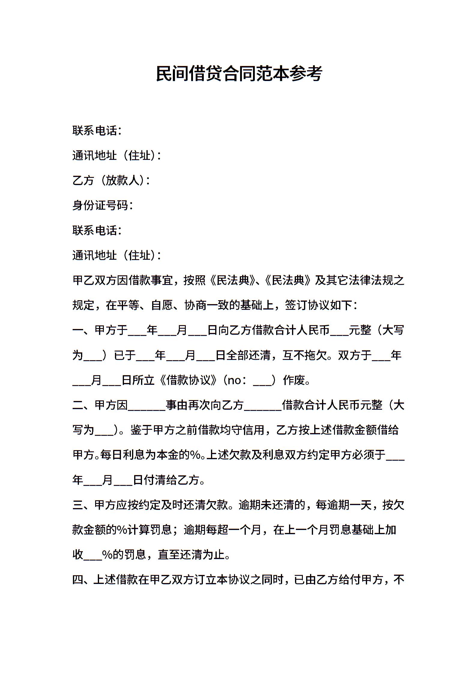 2021年民间借贷合同范本参考
