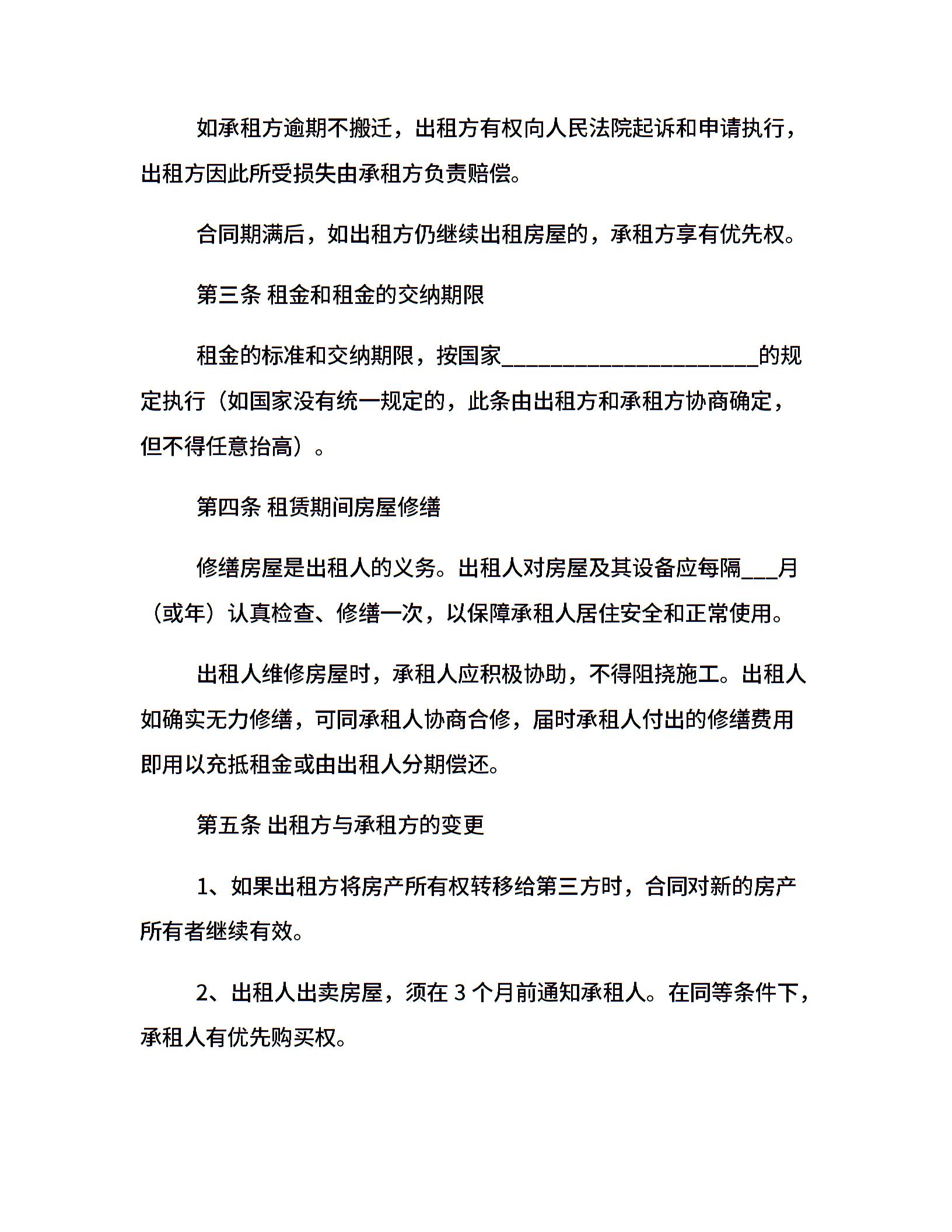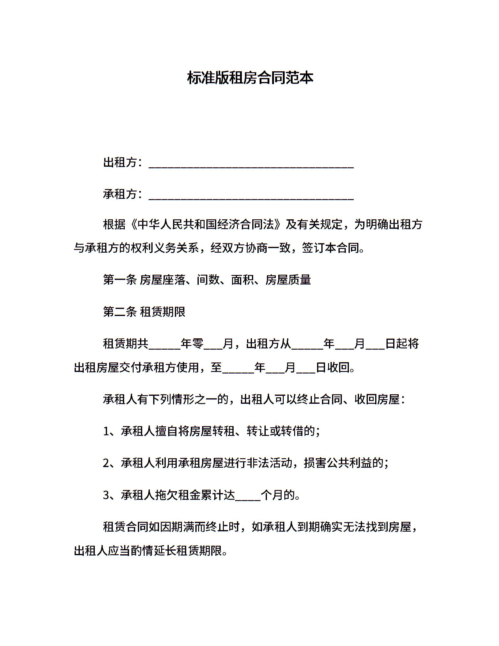 标准版租房合同范本